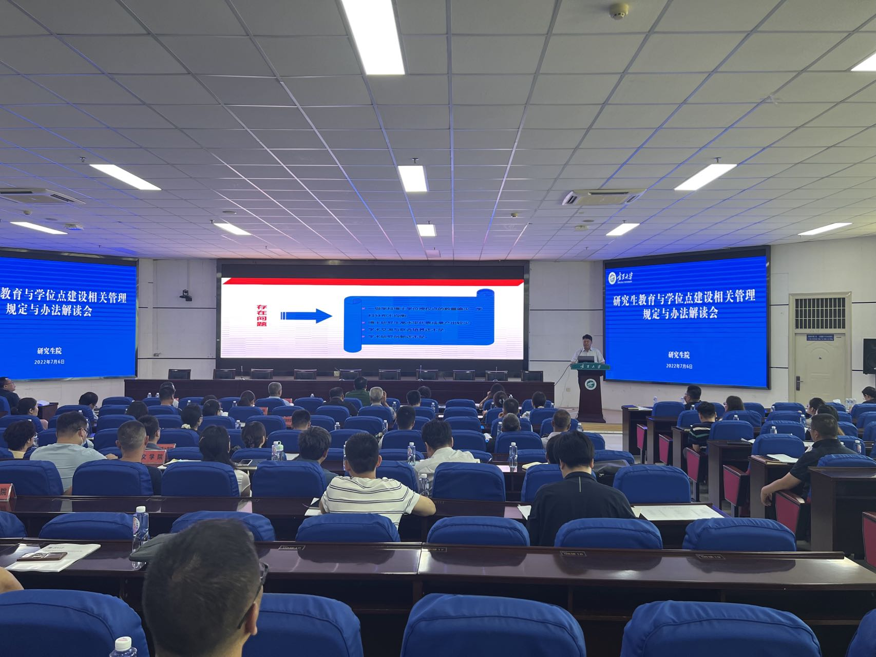 【澳门十大信誉网赌大全新闻中心讯 研究生院】为加强研究生教育顶层设计,强化学位点制度建设,学校近期修订编制了有关研究生学位授予、导师选聘、学位点管理建设、专硕研究生实习实践与研究生招生计划分配等方面的9个管理规定与办法,7月6日,研究生院在文荟楼组织召开研究生教育与学位点建设相关管理规定与办法解读会,校党委常委、副校长李建设主持会议,各研究生培养单位院长、分管副院长、学位点负责人和研究生秘书参加会议。
