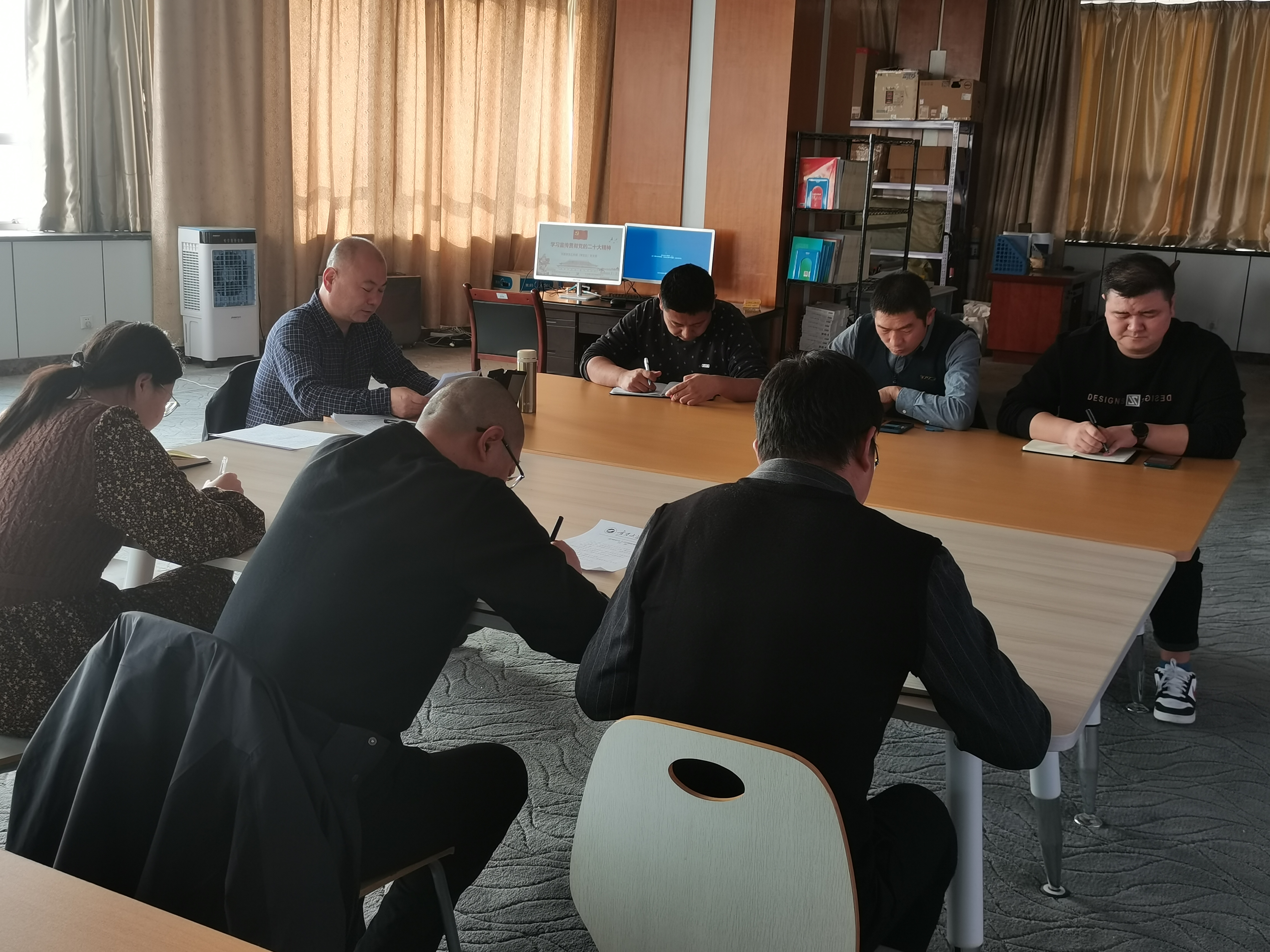 【澳门十大信誉网赌大全新闻中心讯 学生处】11月9日,党委学生工作部(学生处)支部召开专题学习会,通过线上线下结合的形式认真学习党的二十大精神,处长马正亮主持会议,全体教职工参会。