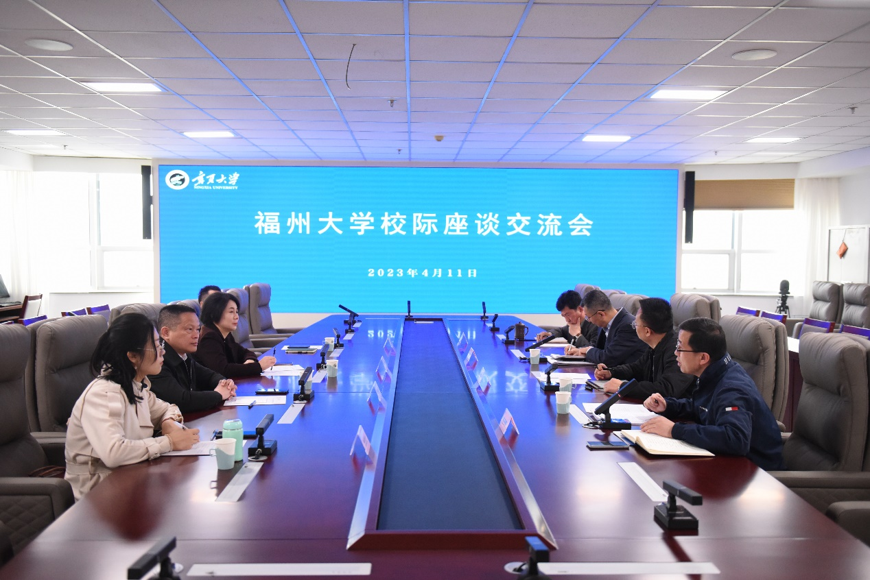 【澳门十大信誉网赌大全新闻中心讯 发展规划与学科建设处】4月11日,福州大学组织部部长兼宣传部部长黄阿火、教务处处长于岩一行来校调研交流,自治区教育厅高教处副处长刘思远陪同调研,学校党委宣传部、发展规划与学科建设处、本科生院、博雅书院相关负责人参加座谈会。