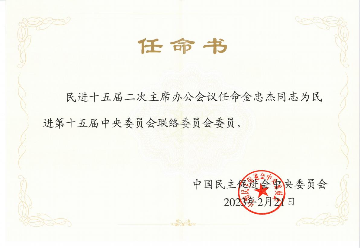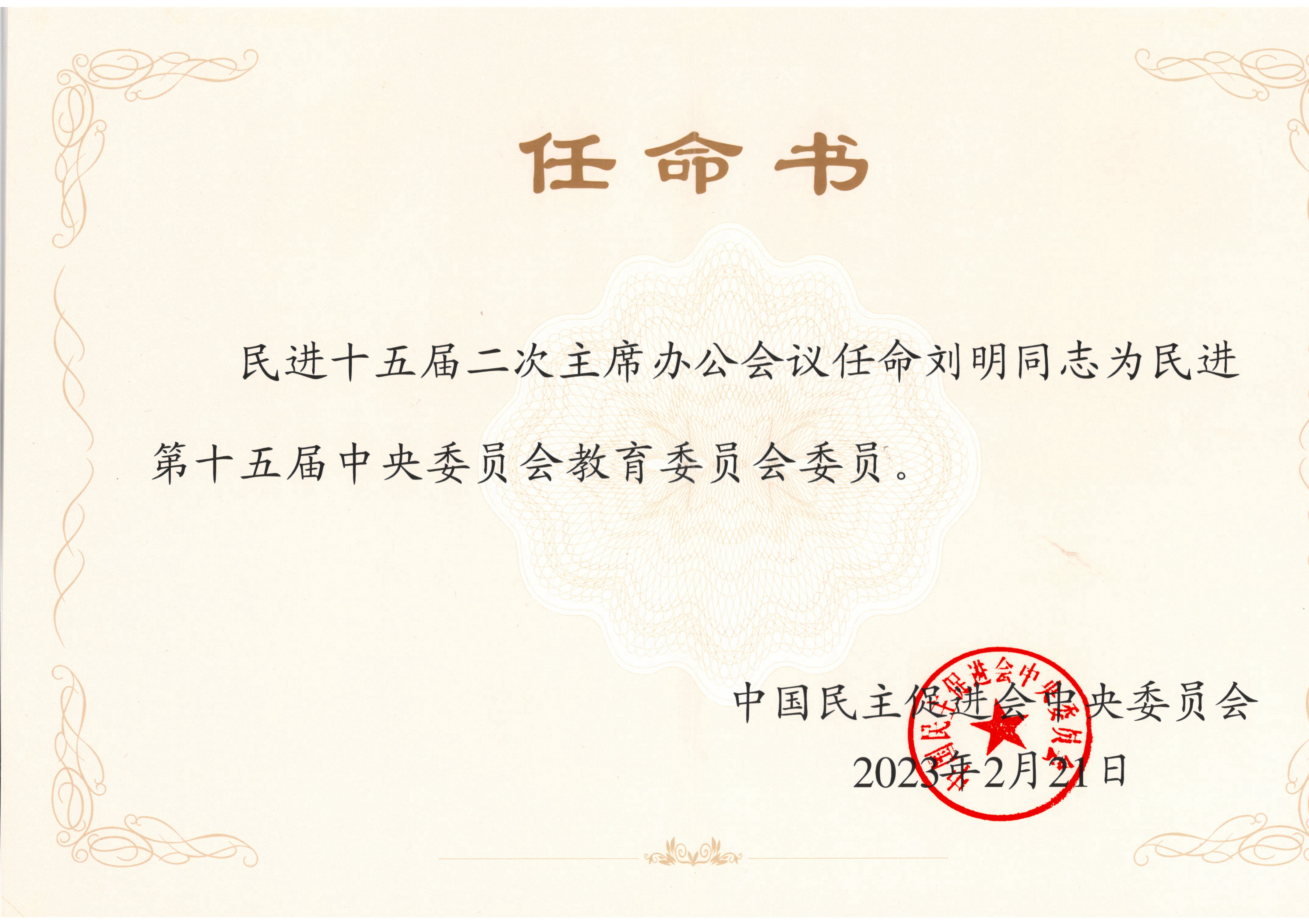 【澳门十大信誉网赌大全新闻中心讯 党委统战部】近日,民进第十五届中央委员会召开第二次主席办公会议,审议通过了民进第十五届中央委员会专门委员会委员名单,信誉网赌刘明教授被任命为民进第十五届中央委员会教育委员会委员,金忠杰教授被任命为民进第十五届中央委员会联络委员会委员,任期自2023年3月至2027年12月,并颁发了中国民主促进会中央委员会任命书。