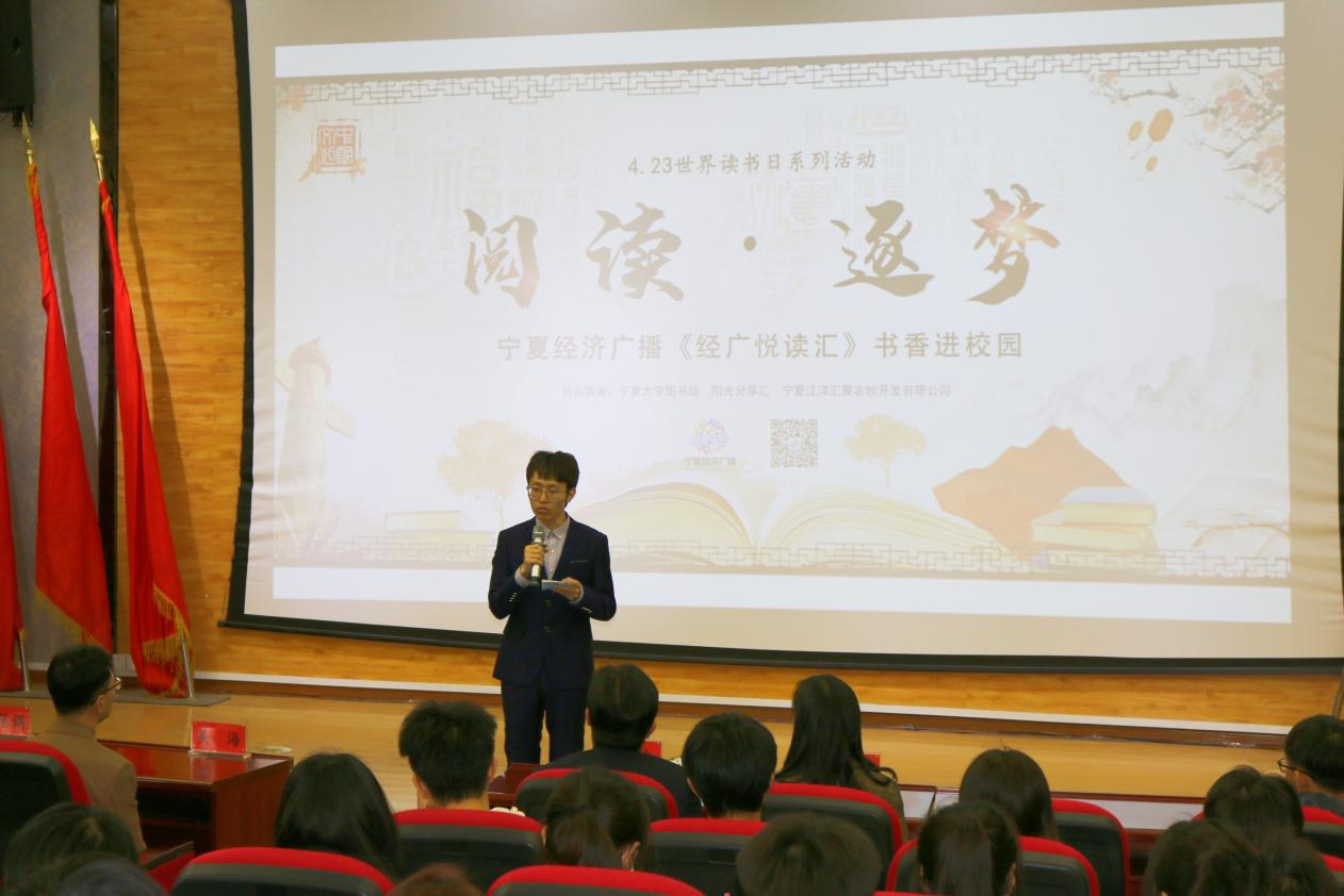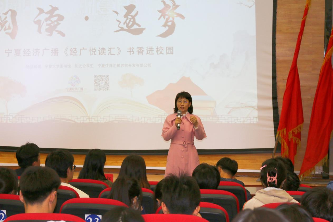 图书馆联合宁夏经济广播《经广悦读汇》,举办“阅读·逐梦”——《经广悦读汇》书香进高校活动。图书馆党总支书记王彦仓、宁夏广播电视台经济广播部主任吴海、文学院副教授杨慧娟以及学校师生代表参加活动。