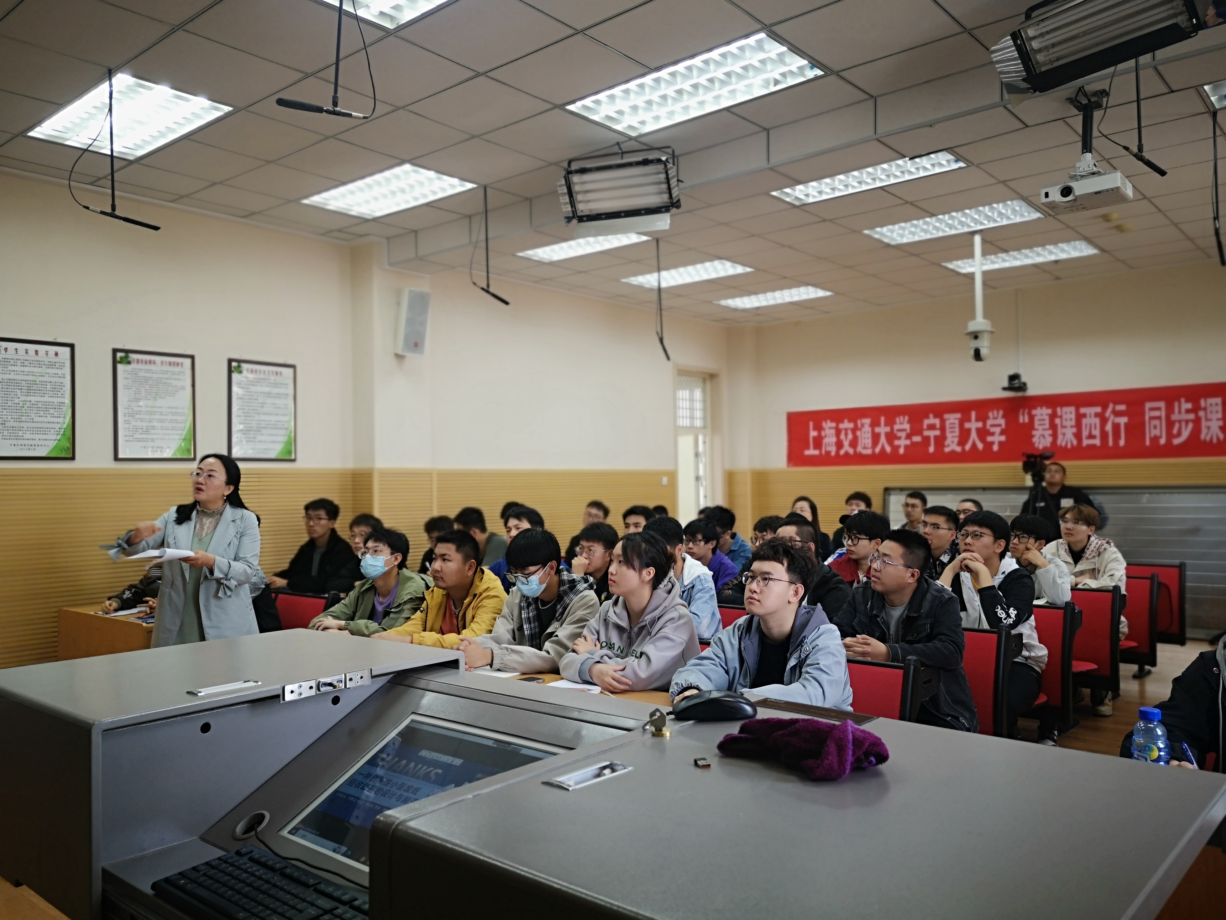 【澳门十大信誉网赌大全新闻中心讯 本科生院】4月26日,澳门十大信誉网赌大全-上海交通大学“慕课西行 同步课堂”——《机械设计与制造》课程在澳门十大信誉网赌大全贺兰山校区德勤楼310智慧教室开课。本次课程由上海交通大学机械与动力工程学院蒋丹教授主讲,澳门十大信誉网赌大全本科生院院长张亚红、副院长张腾,机械工程学院副院长李宏燕、《机械设计I》主讲教师高广娣、机械设计教研室全体教师及2021级卓越工程师1班45名同学参加了此次远程直播互动教学活动。