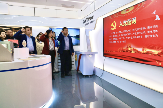 大家参观了国家大学科技园区数字化展厅、数字化模拟实验室、党群工作共享中心,深入了解了园区的整体建设情况、未来教室规划、科技成果转化、创新资源共享等内容。随后共同重温了入党誓词。