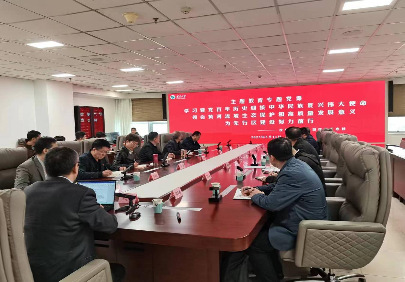 【澳门十大信誉网赌大全新闻中心讯 科学技术研究院】5月11日,校党委常委、副校长王忠静以《学习建党百年历史,迎接中华民族复兴伟大使命,领会黄河流域生态保护和高质量发展意义,为先行区建设努力前行》为题,在德勤楼9楼会议室向科学技术研究院党支部全体党员,工程与地理学部党委、土木与水利工程学院党总支、建筑学院党总支、地理科学与规划学院党总支班子成员讲授主题教育专题党课。