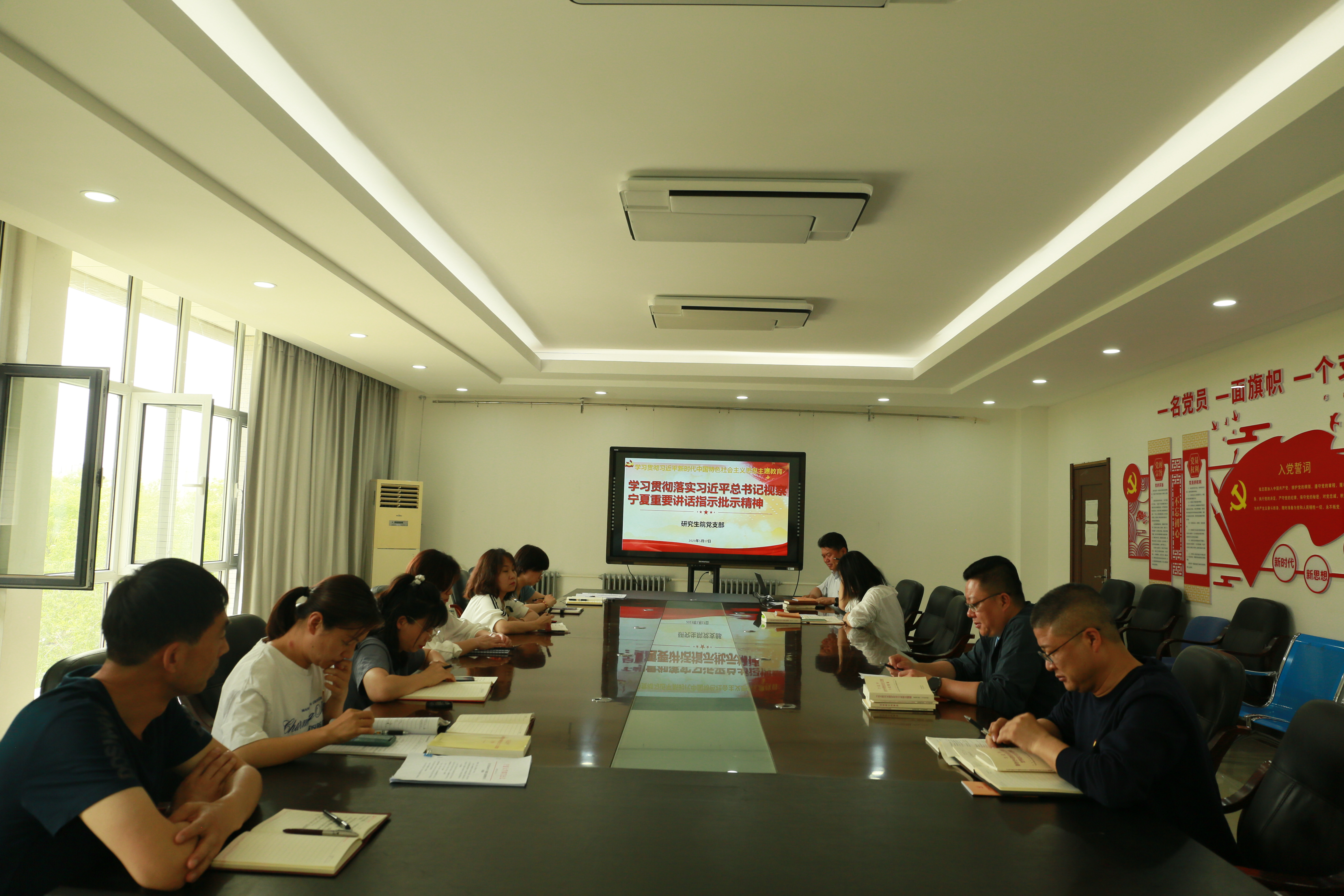 研究生院院长曹兵从统筹推进生态保护修复和环境治理、坚持不懈推动高质量发展、推进全面脱贫与乡村振兴战略有效衔接三个方面,领学了习近平总书记视察宁夏重要讲话和重要指示批示精神,并要求全院把学习贯彻落实习近平总书记视察宁夏重要讲话和重要指示批示精神与学习贯彻习近平新时代中国特色社会主义思想紧密结合起来,进一步强化理论武装,不断提高政治判断力、政治领悟力、政治执行力,切实用习近平总书记视察宁夏重要讲话和重要指示批示精神的立场观点方法指导实践、推动工作。