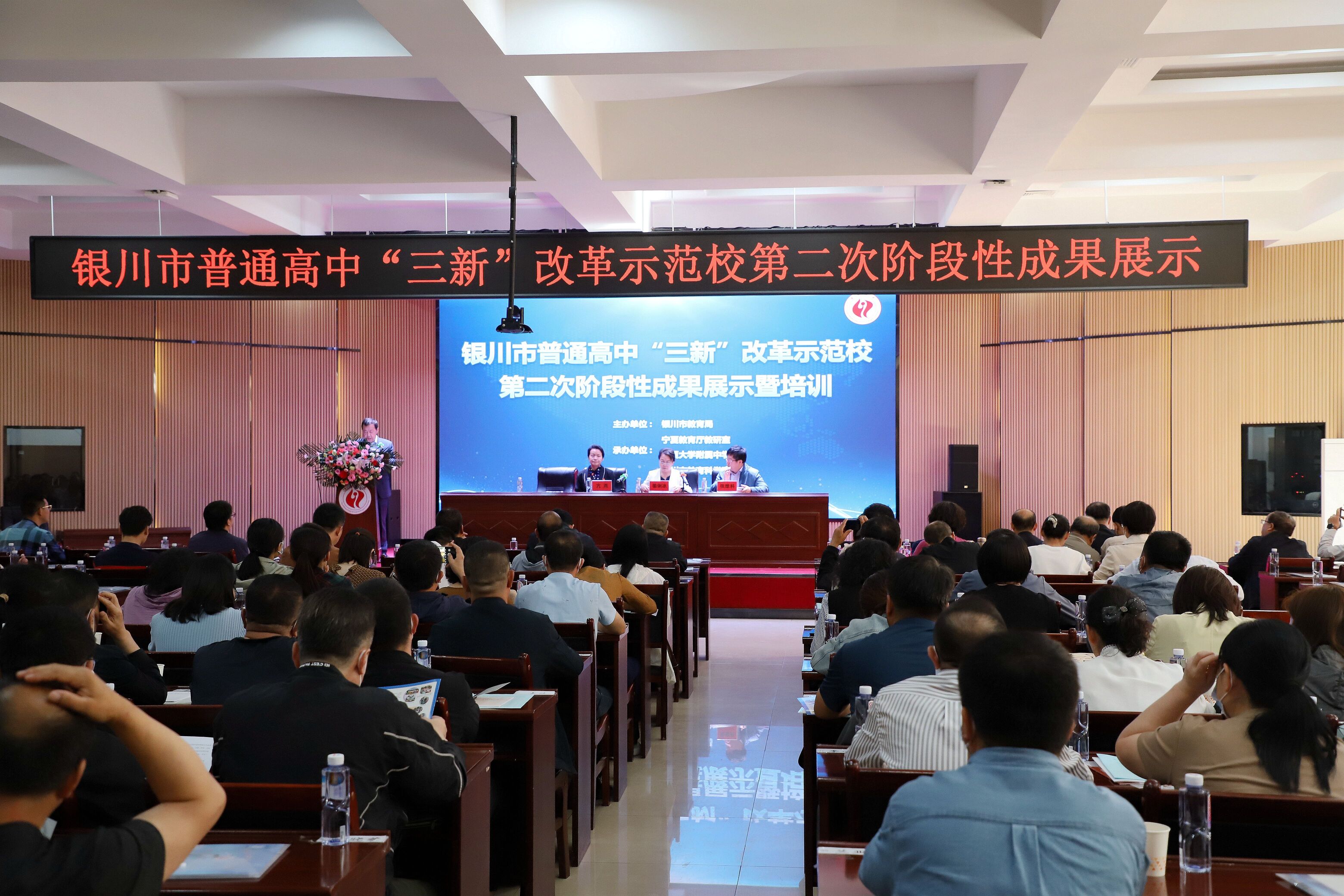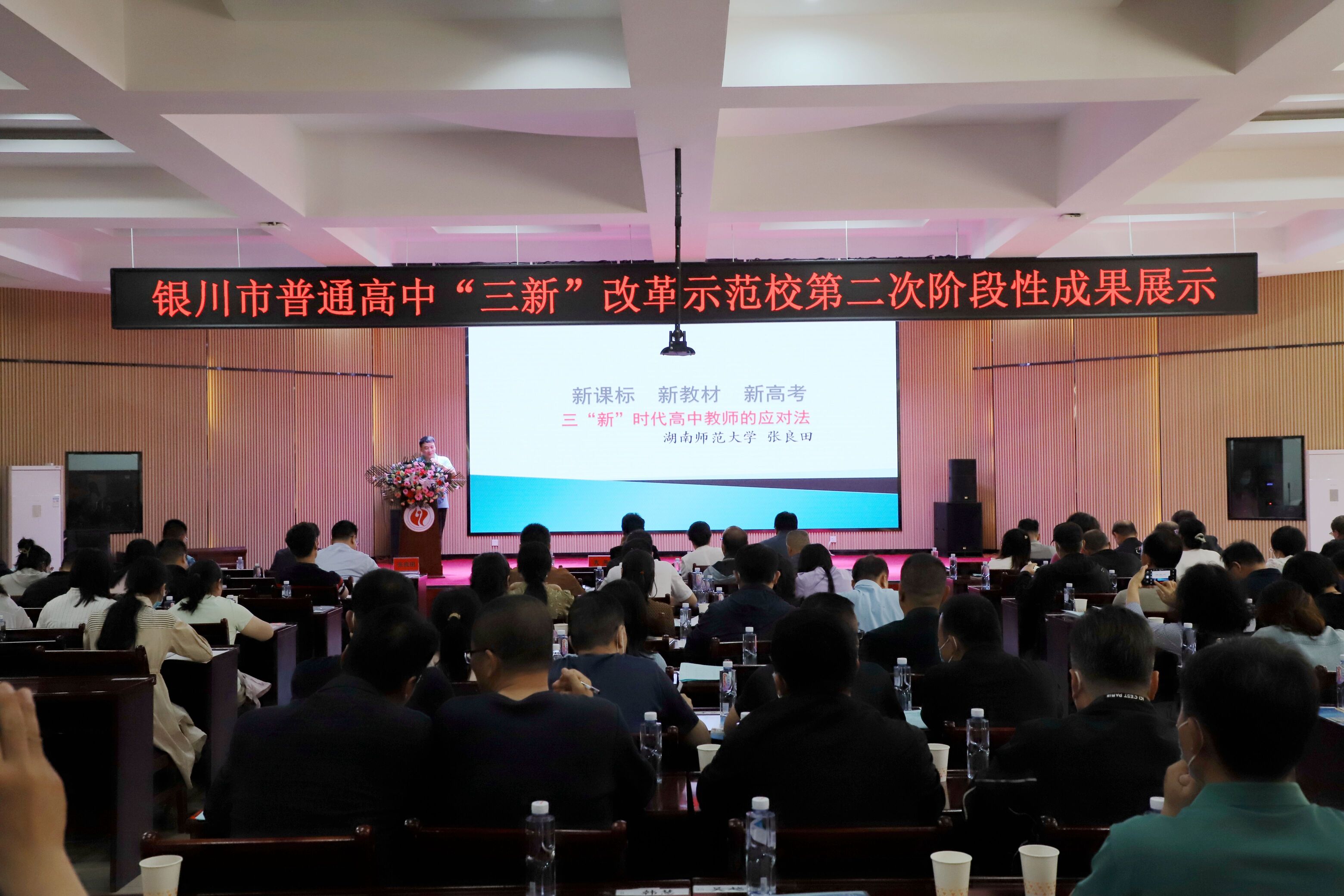 【澳门十大信誉网赌大全新闻中心讯 附属中学/文 姬晓姗 /图】为贯彻落实党的二十大精神,全面落实立德树人根本任务,发挥示范校建设的示范引领、辐射带动作用,搭建校际间相互促进、共同成长的交流平台,推动银川市新课程新教材实施水平的整体提升,5月30日,银川市普通高中“三新”改革示范校第二次阶段性成果展示暨培训活动在信誉网赌附属中学举办。银川市教育局副局长姜俐冰、银川市教科所所长张维科、各县(市)区教(体)育局负责同志,各县(市)区教研室(教师发展中心)负责人及高中教研员、银川市辖区各公、民办普通高中学校校长或分管副校长以及教务主任、年级组长、教研组长、备课组长等200余名领导嘉宾出席开幕式,附属中学副校长王永峰主持开幕式。