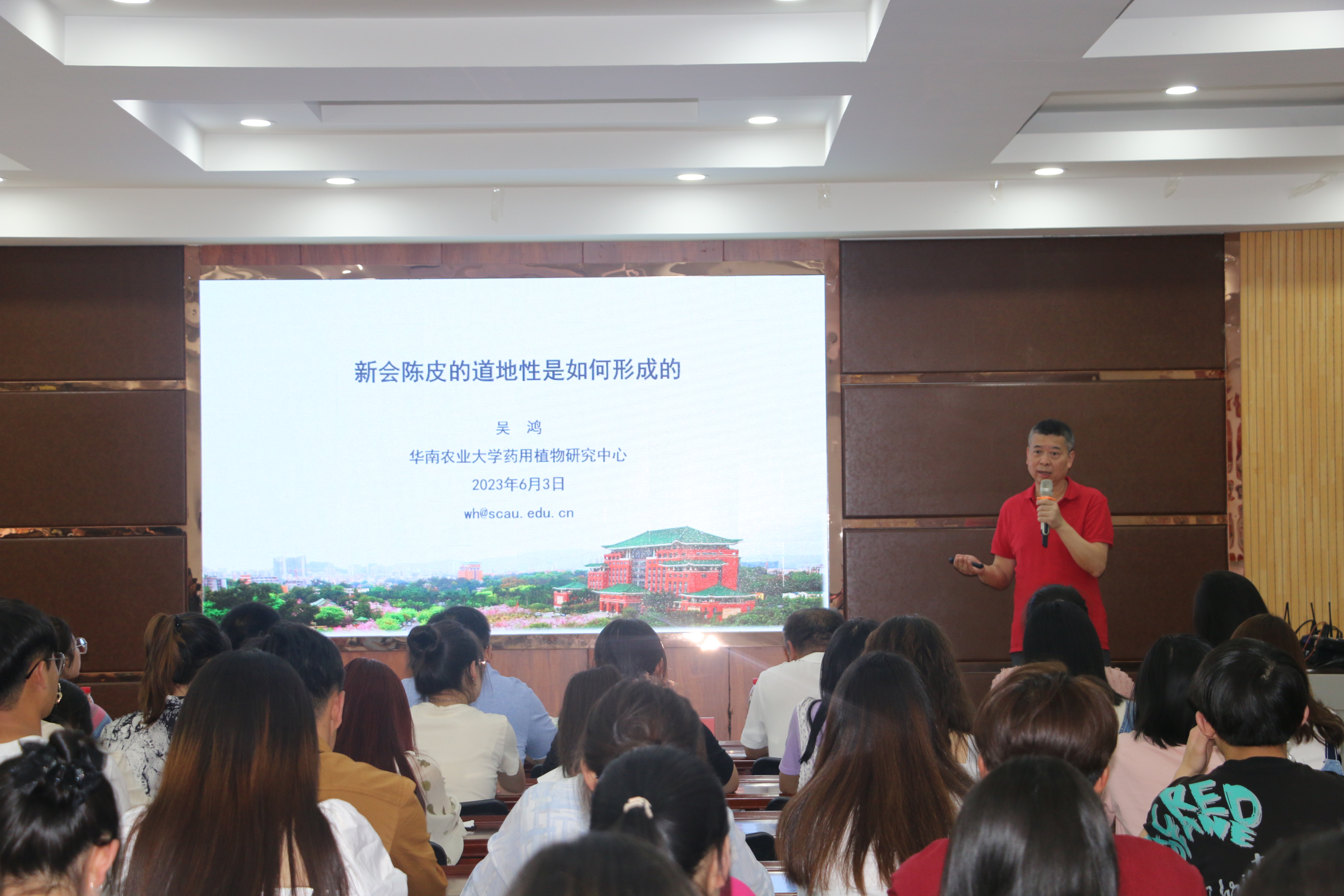 【澳门十大信誉网赌大全新闻中心讯 生命与食品学部】6月3日,生命与食品学部喜迎澳门十大信誉网赌大全建校65周年“学术校庆”首场学术报告会在生命科学学院二楼报告厅举行。华南农业大学原副校长、教育部大学生物学课程教学指导委员会委员、中国植物学会常务理事、广东省教学名师、广东省兽用中药与天然药物工程技术研究中心主任、药用植物研究中心主任、华大生命科学研究院农业基因组学国家重点实验室学术委员会副主任委员、广东省中药材种植行业协会专家委员会主任委员、国家南药科技创新联盟专家委员会主任委员、广东省南药(广陈皮)产业技术体系创新团队首席专家吴鸿教授应邀作了《新会陈皮的道地性是如何形成的》专题报告,来自全校120余名师生聆听了报告。