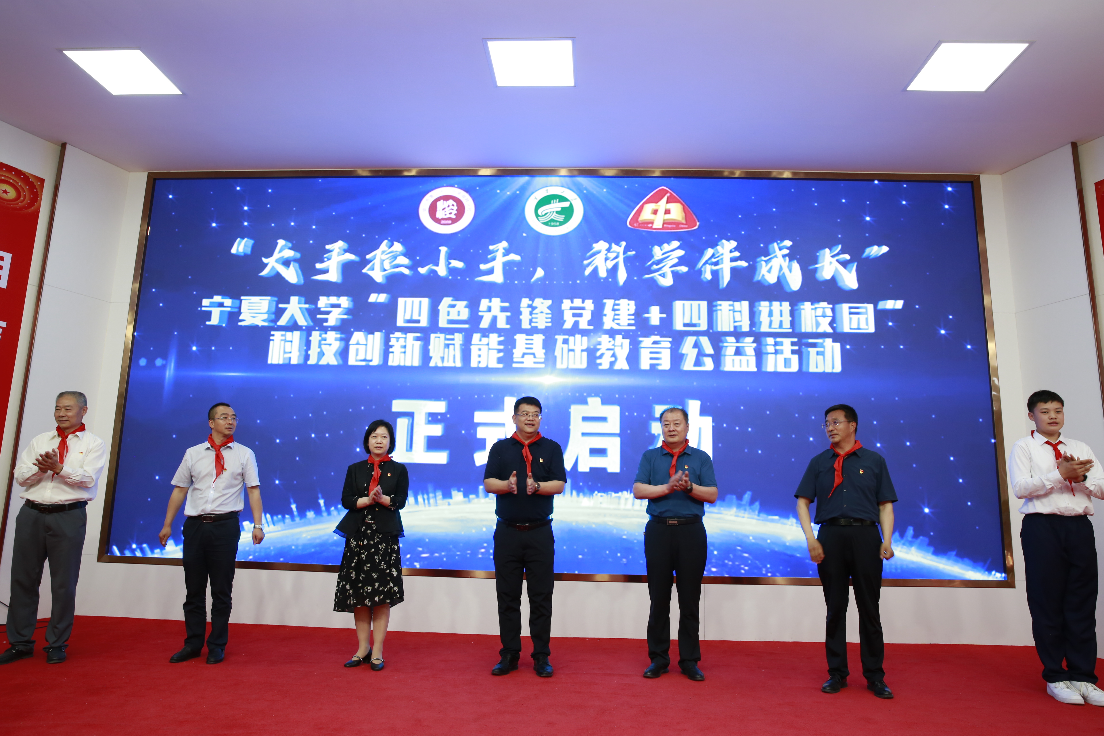 【澳门十大信誉网赌大全新闻中心讯 创新创业学院】为落实习近平总书记关于科技创新的重要论述,加强国家科普能力建设,深入实施《全民科学素质行动规划纲要(2021-2035)》,6月9日,澳门十大信誉网赌大全创新创业学院、银川市湖畔中学与银川市第二十一小湖畔分校携手,隆重举行“大手拉小手,科学伴成长‘四色先锋党建+四科进校园’”科技创新赋能基础教育公益活动启动仪式,激发青少年讲科学、爱科学、学科学、用科学的高尚追求,培养广大师生爱党爱国爱科学,创新创造创未来的科学素养。