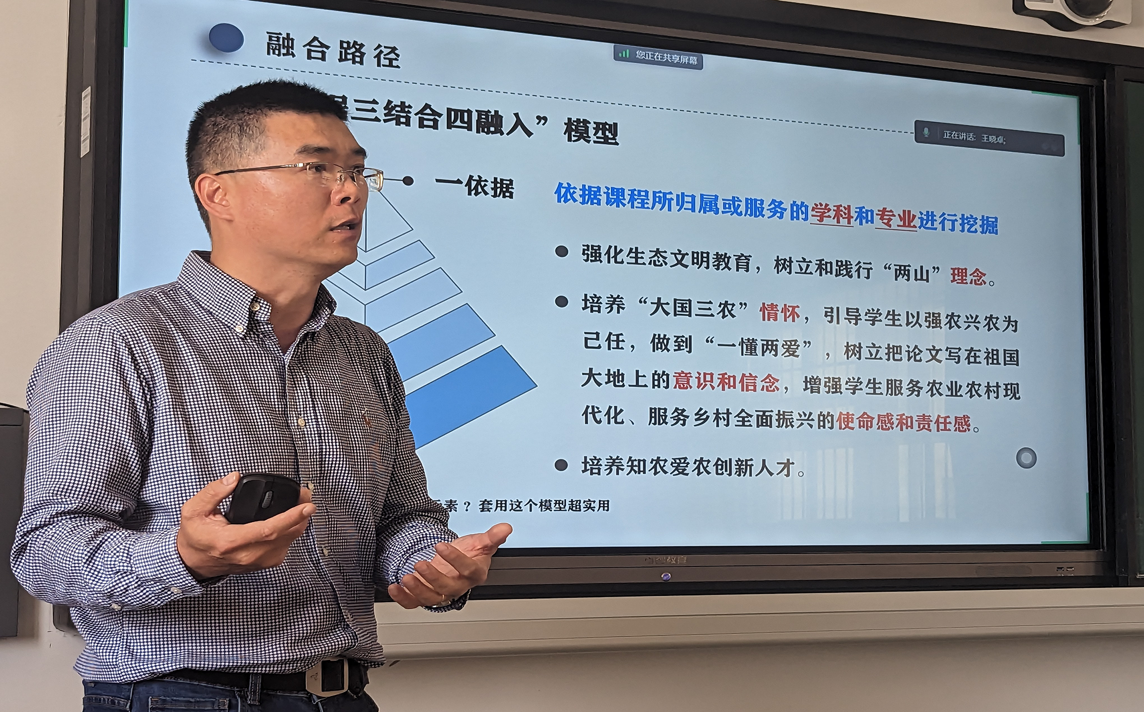 葡萄酒与园艺学院邀请农学院副教授梁熠作了题为《课程思政元素的挖掘与融入——以<作物栽培学>为例》的课程思政教学经验分享会。梁熠老师生动详细地展示了如何在农科课程的教学中恰如其分地融入思政元素,培养学生“德术兼修、知行合一”的综合素质。