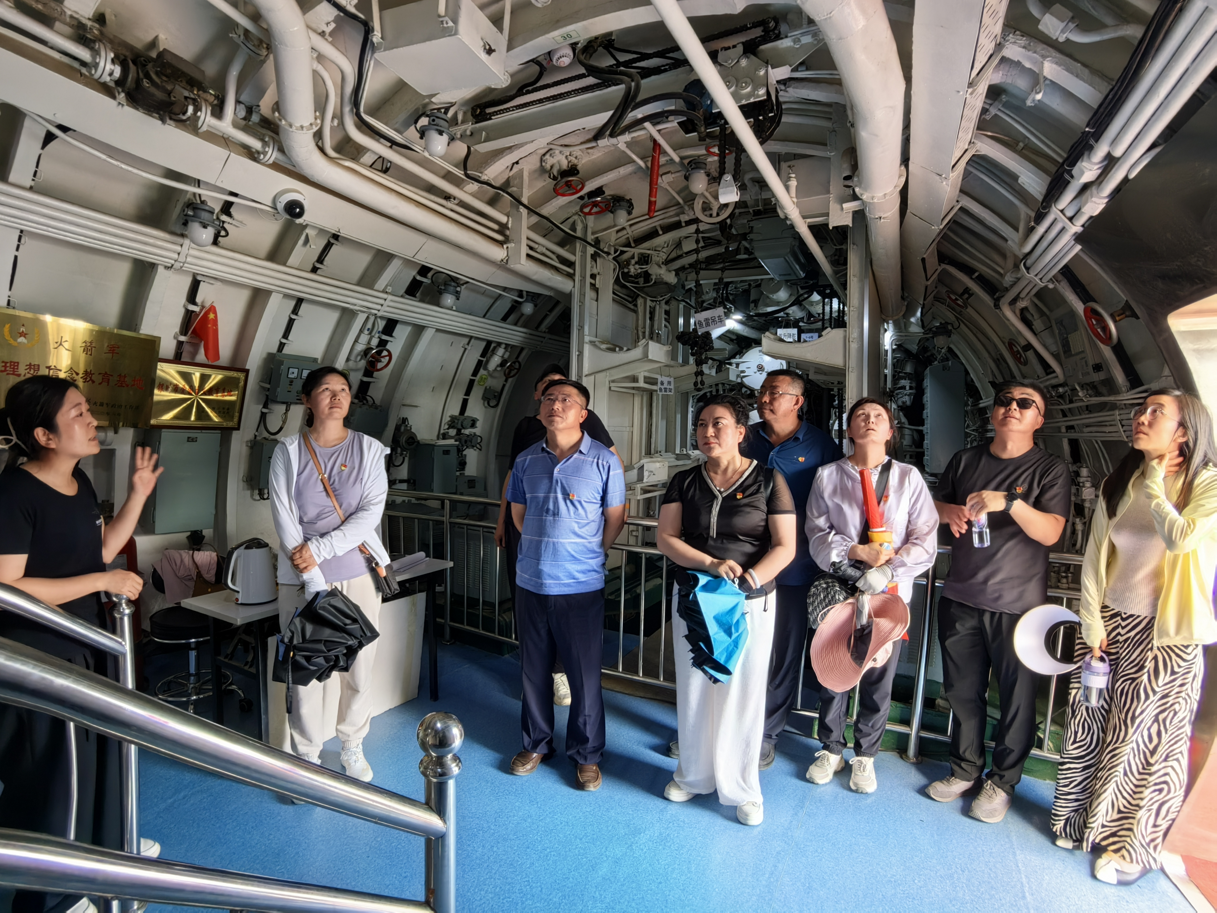 在银川黄河军事文化博览园,党员们近距离参观了部分歼击机、防空装备等,进入“银川号”潜艇,参观了潜艇内部构造,切身体会了海军指战员的艰苦工作环境,通过近距离接触人民海军功勋战舰,老师们深切感受到了人民军队现代化建设的铿锵步履。