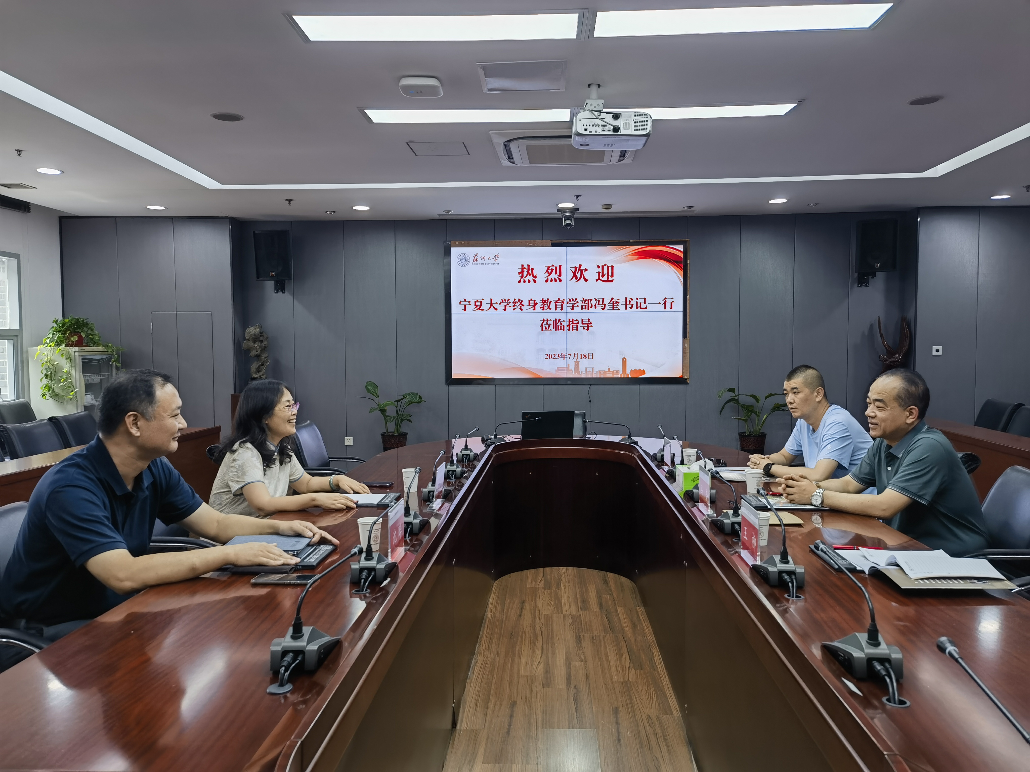 【澳门十大信誉网赌大全新闻中心讯 终身教育学部】7月18日,终身教育学部书记、宁夏高等学校师资培训中心主任冯奎一行赴苏州大学继续教育学院、王健法学院调研学习。