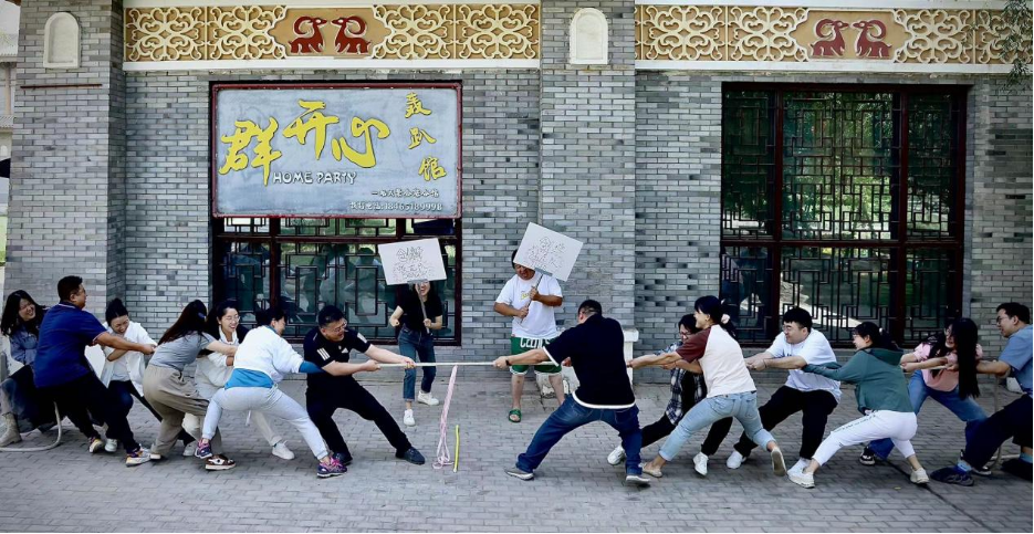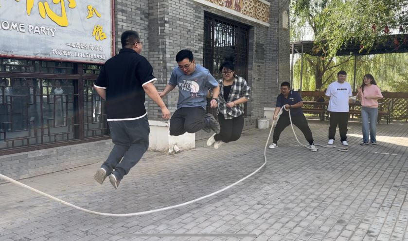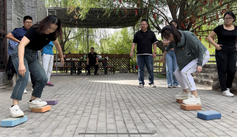 最后,全体教职工分为两组:“创新蛟龙队”和“创业猛虎队”,先后开展了角力拔河、集体跳绳、四人五足、摸石过河等“龙争虎斗素拓PK”系列素拓活动,整个活动最终在友好竞争和欢声笑语中结束。