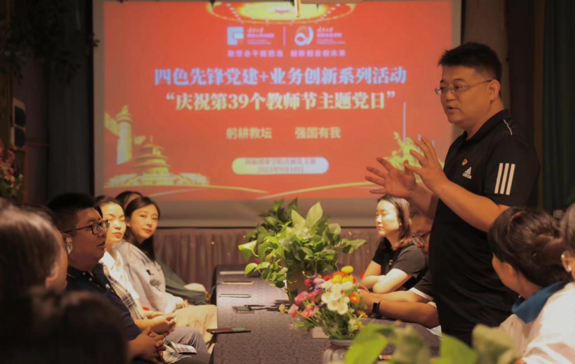本次欢庆教师节主题工会活动,不仅为全体教职工送上节日的祝福,还特别邀请了从学院转岗和离岗深造的几位教师一同参与,营造了尊师重教和传承创新的学院精神和良好氛围。此活动同时也是学院积极推进“四色先锋”党建+工会工作新模式的实践体现,通过创新性设计“双创茶话会——我来说双创”“为巾帼教师献花”“龙争虎斗素拓PK”等活动,进一步提升了教职工对于教师职业的学院认同感和归属感,有效激发了整个工作团队的拼搏精神和协作能力,全面展现了创新创业学院“敢想会干能担当,创新创业创未来”的价值观和精神风貌。