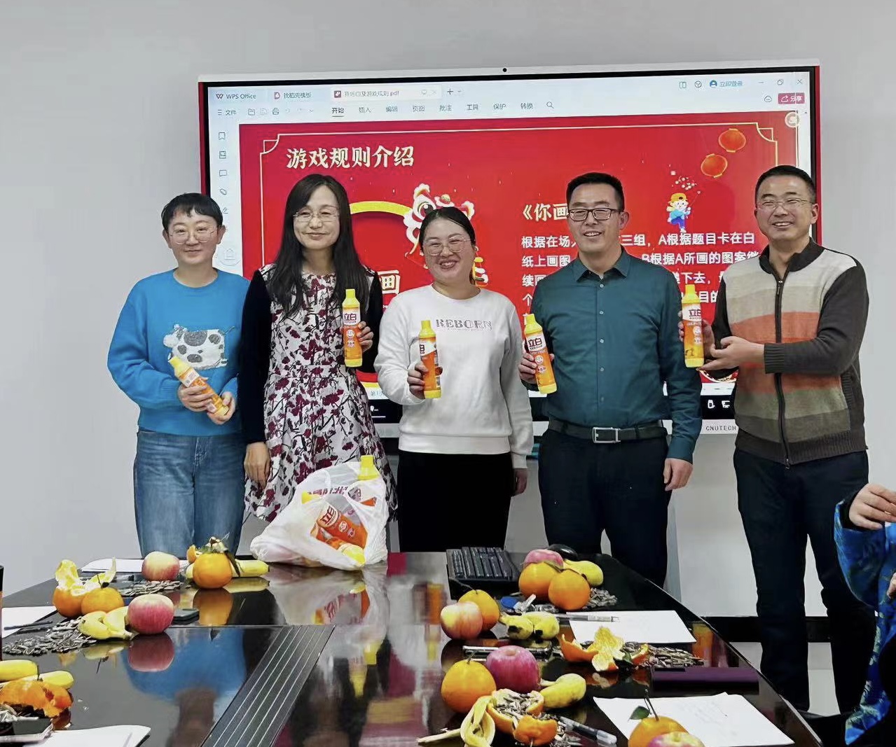 联欢活动在欢乐祥和的气氛中开始。一个个别开生面的趣味益智健体小游戏把大家带入了欢乐的海洋。有趣的脑筋急转弯、你画我猜、数鸭子展现出了老师们之间的默契;在“盲人摸鼻子”等游戏中老师们互相帮助,欢声笑语不绝于耳。原地踏步走、投乒乓球等小游戏让老师们在工作之余动起来,放松了身体,愉悦了心情。
