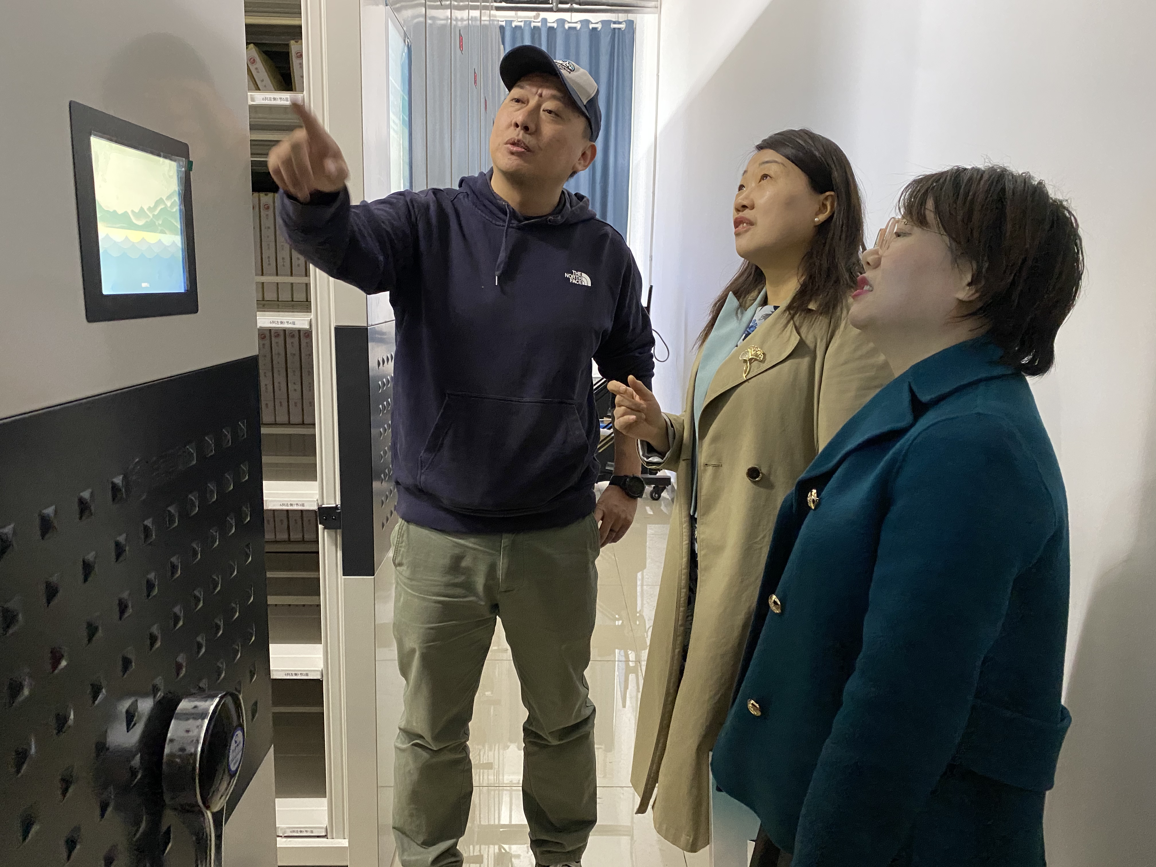 赵东霞一行还参观了新建档案库房,并就校馆合作共建进行了现场交流。