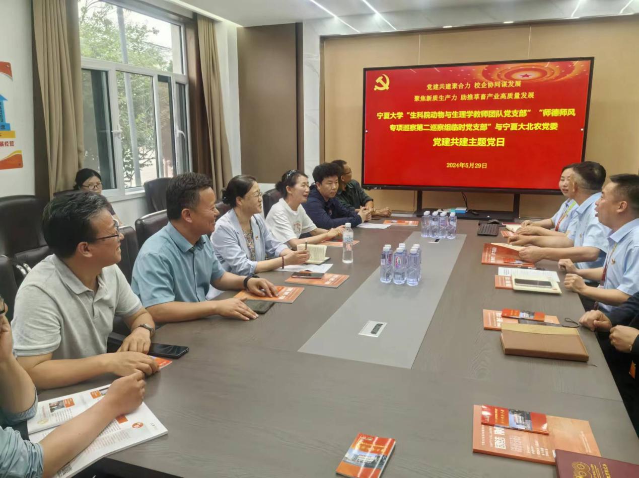 活动中,全体党员参观了宁夏大北农实业有限公司企业展厅、五星党委展厅、科技大楼,深入了解了公司发展状况以及党建引领业务的主要做法和成效;两个党支部与公司党委共同学习习近平总书记关于发展新质生产力的重要论述,围绕“聚焦新质生产力 助推草畜产业高质量发展”主题开展座谈交流。