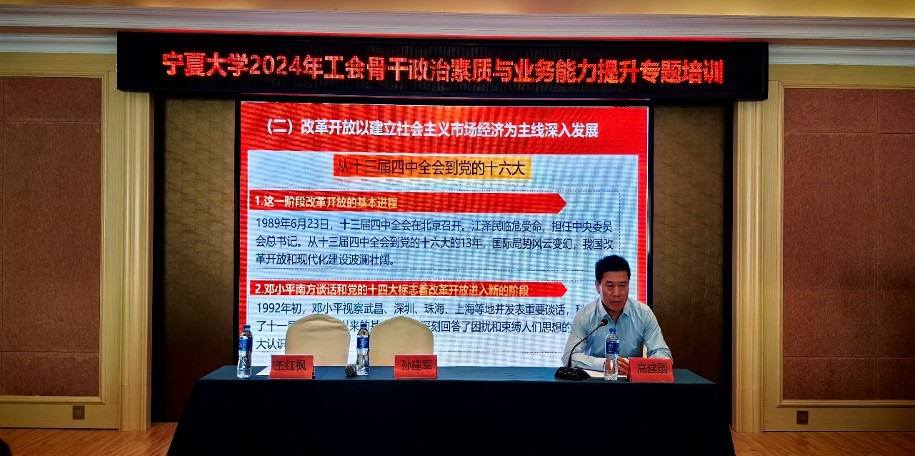 活动采用集中讲座、现场教学和体验考察等方式进行。邀请吴忠市委党校(市行政学院)常务副校长,一级调研员高建国对学习领会党的二十届三中全会精神和习近平总书记考察宁夏重要讲话精神进行了专题辅导。校工会主席孙建军结合贯彻落实习近平总书记关于工人阶级和工会工作的重要论述及《澳门十大信誉网赌大全工会组织管理办法》、《学部和学院工会工作职责与指引》、《澳门十大信誉网赌大全工会经费收支管理办法》等文件精神对工会干部业务能力建设进行了培训和解读。