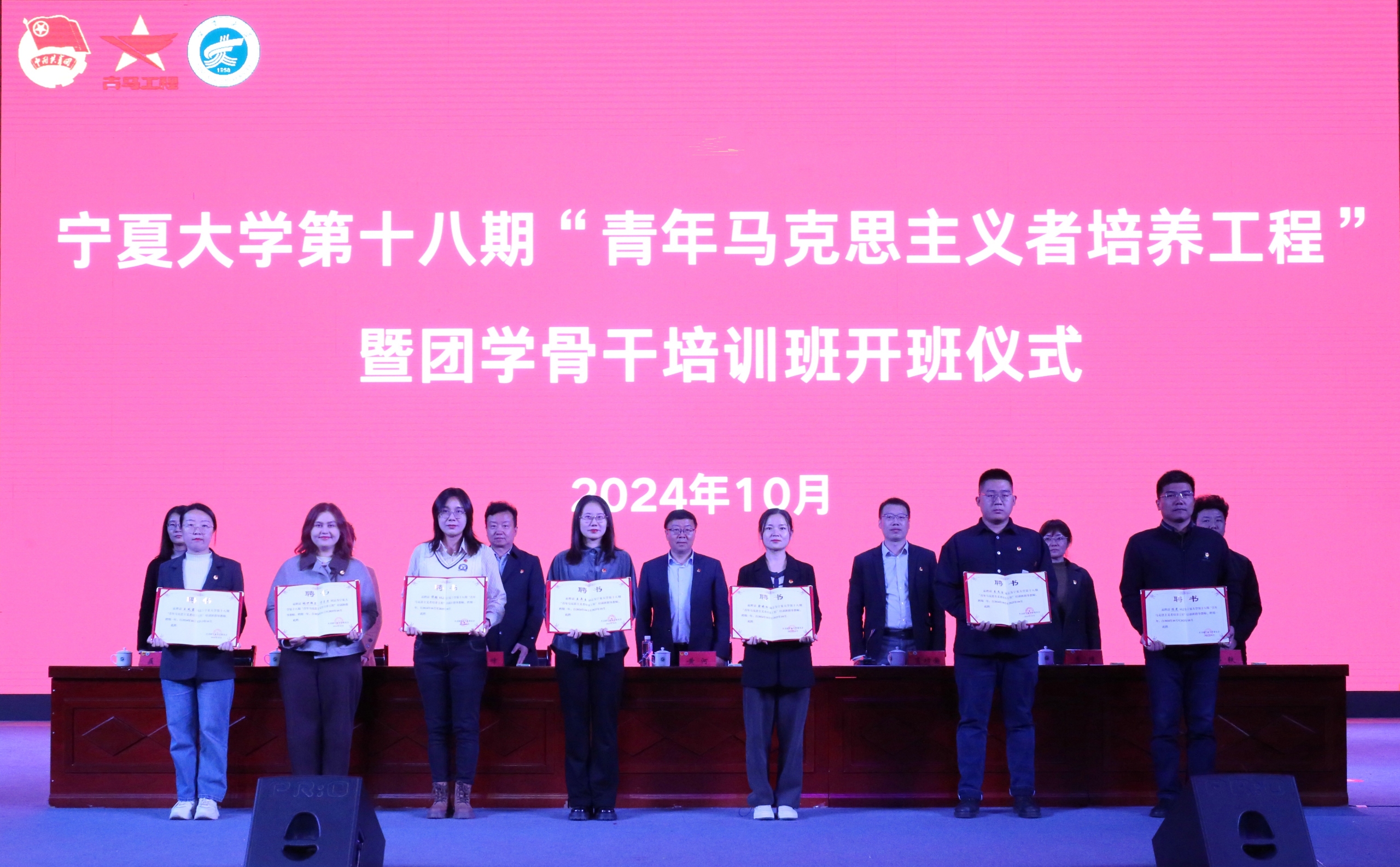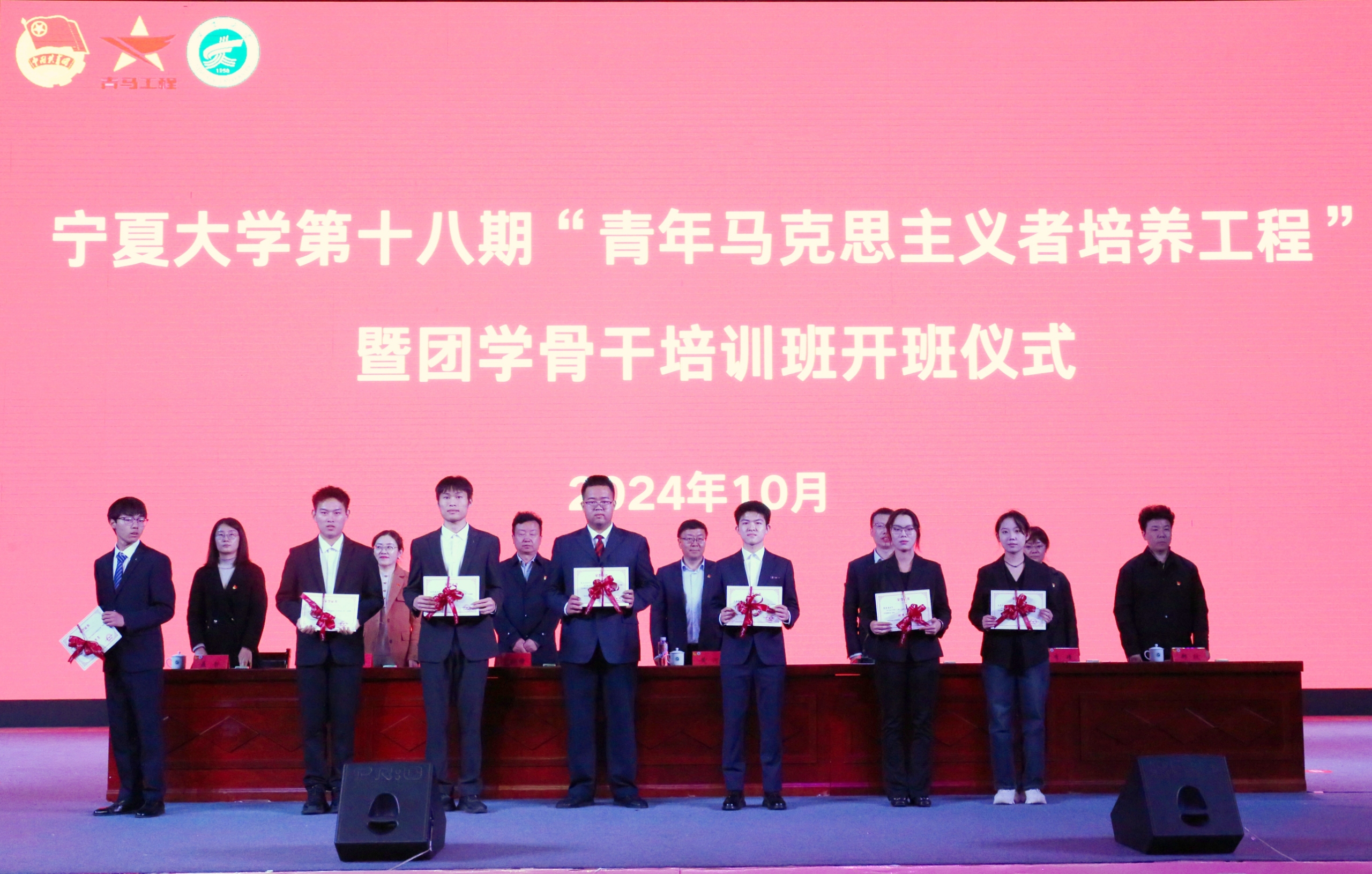 党委宣传部、党委统战部、团委、对外合作交流处、党委学生工作部(学生处)、马克思主义学院相关工作负责人,各二级单位团委书记(副书记)、团组织负责人,校院两级团学骨干、“青马工程”“贺兰英才”“骐骥计划”培训班学员500余人共同参加仪式。