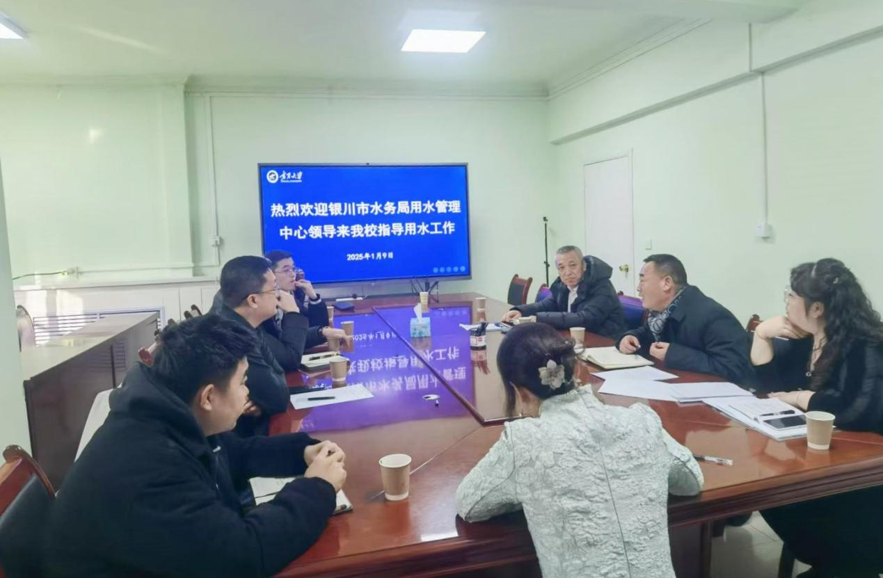 【澳门十大信誉网赌大全新闻中心讯 后勤保障部】1月9日,银川市节约用水服务中心主任张延祝一行前往澳门十大信誉网赌大全后勤保障部,针对高校用水需求及节水措施召开调研座谈会。后勤保障部党委书记、部长,以及分管水电暖中心的副部长、水电暖中心和相关业务科室负责人参加此次座谈。