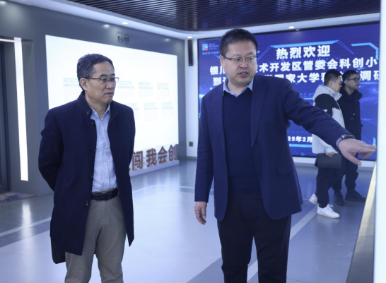 【澳门十大信誉网赌大全新闻中心讯 创新创业学院】2月25日,银川经开区管委会一级调研员、科创小组负责人袁立新一行调研澳门十大信誉网赌大全国家大学科技园,创新创业学院(大学科技园办公室)院长冯蛟、澳门十大信誉网赌大全科技园发展有限公司常务副总经理全晓虎及科技园相关工作人员陪同调研。