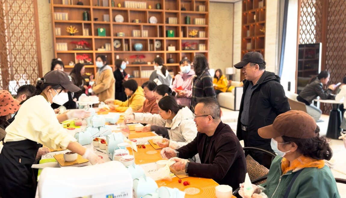 采摘活动后,团队转场至苏州公馆营销中心。在甜品师指导下,教职工们开启花盆草莓蛋糕创意DIY。大家将新鲜采摘的草莓与特调奶油巧妙搭配,精心制作出形态各异的艺术蛋糕。活动现场互动热烈,不同院系教师交流烘焙心得,分享教学趣事,在协作中深化情谊。