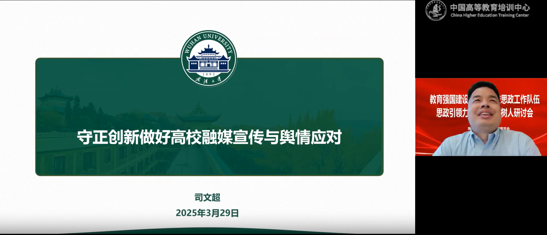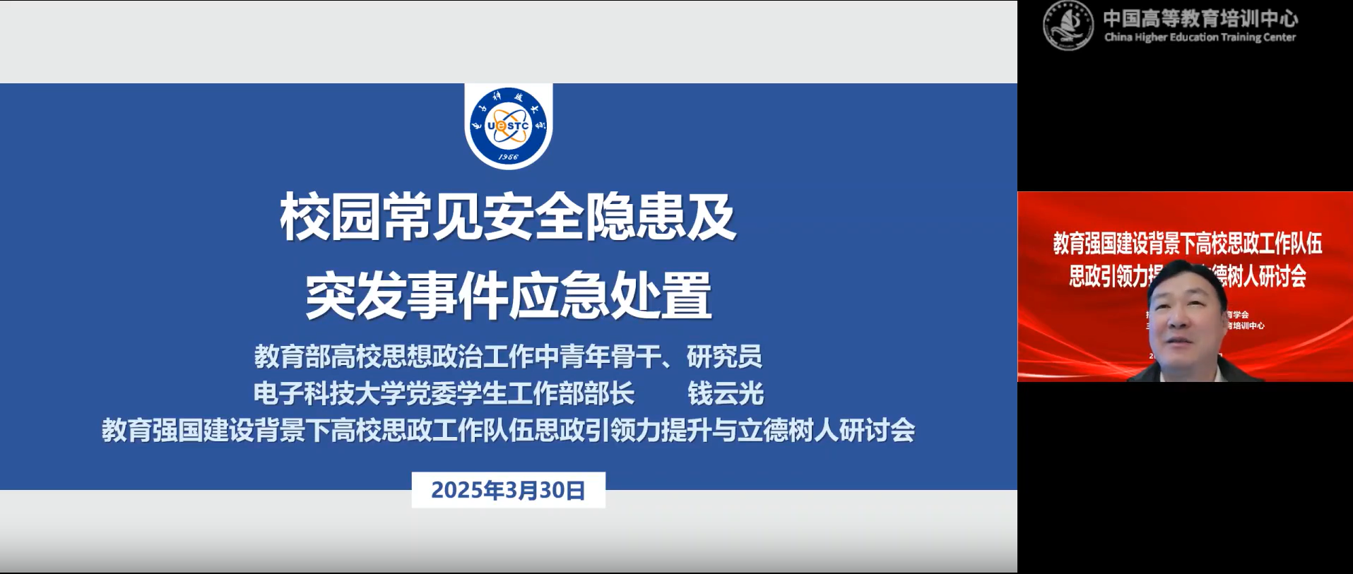 【澳门十大信誉网赌大全新闻中心讯 党委学生工作部】为深入贯彻落实党的二十届三中全会和全国教育大会精神,认真学习领会第二十八次全国高校党的建设工作会议精神,切实加强新时代学校思想政治教育队伍建设,全面提升辅导员、班主任队伍的思想政治素养与育人能力,3月29日至30日,澳门十大信誉网赌大全联合中国高等教育学会,通过在线直播的形式,组织开展教育强国背景下学工队伍思想政治引领力提升与立德树人专题培训。