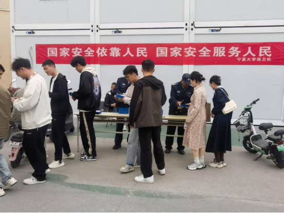 【澳门十大信誉网赌大全新闻中心讯 保卫处】为深入贯彻总体国家安全观,增强师生国家安全意识,4月15日,保卫处与自治区国家安全厅、银川市公安局西夏区分局驻澳门十大信誉网赌大全警务室联合开展《中华人民共和国反间谍法》《中华人民共和国密码法》及防电信诈骗、反邪教等安全宣传教育,旨在进一步提高广大师生国家安全意识和防诈识诈能力,推动国家安全教育走深走实。
