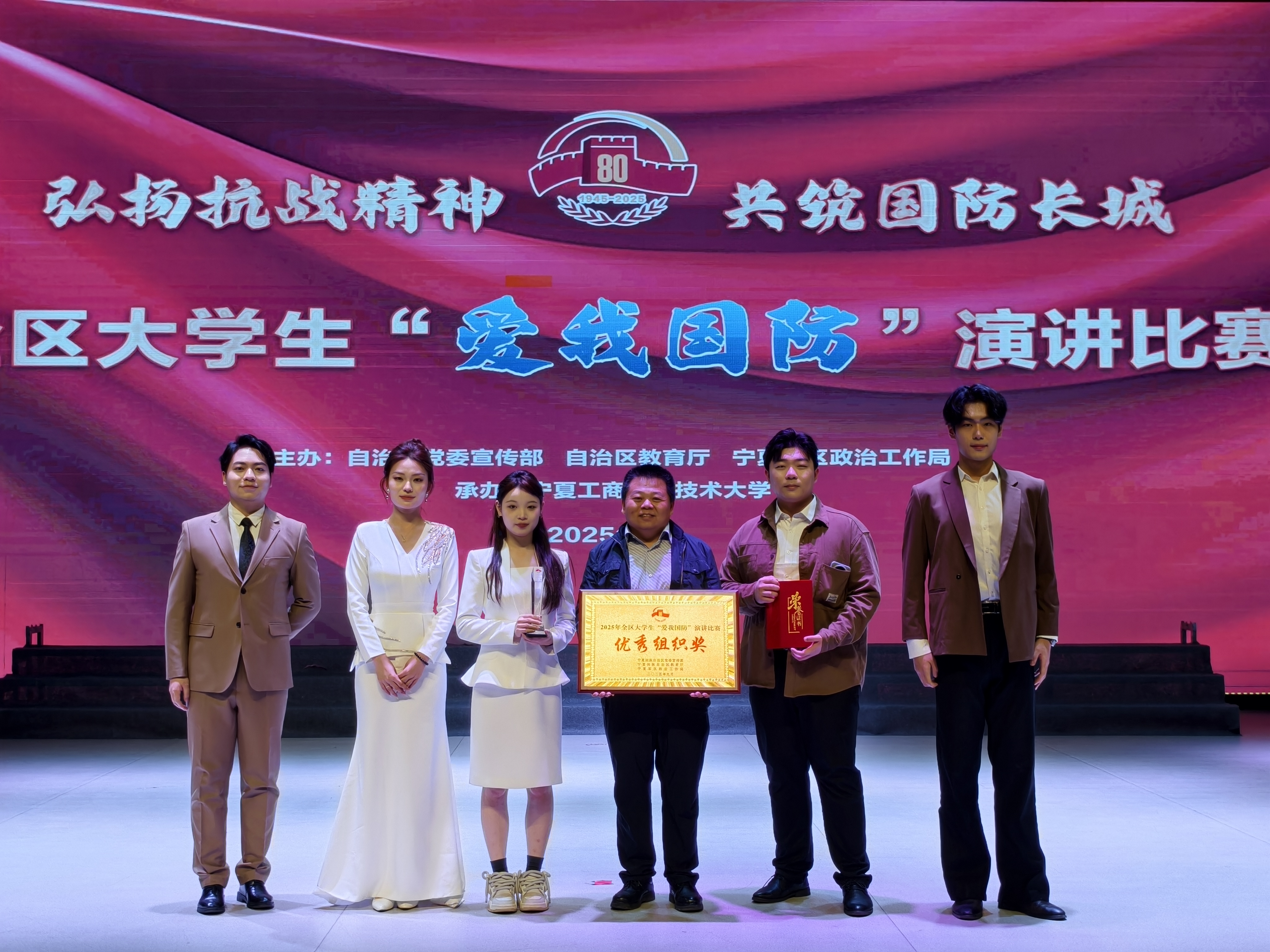 【澳门十大信誉网赌大全新闻中心讯 人民武装部(国防教育教学中心)】9月26日,由自治区党委宣传部、自治区教育厅、宁夏军区政治工作局共同主办的2025年全区大学生“爱我国防”演讲比赛决赛在宁夏工商职业技术大学圆满落幕。信誉网赌选送的作品《一代人有一代人的国防情》从参赛的全区19所高校中脱颖而出,荣获一等奖,学校荣获优秀组织奖。