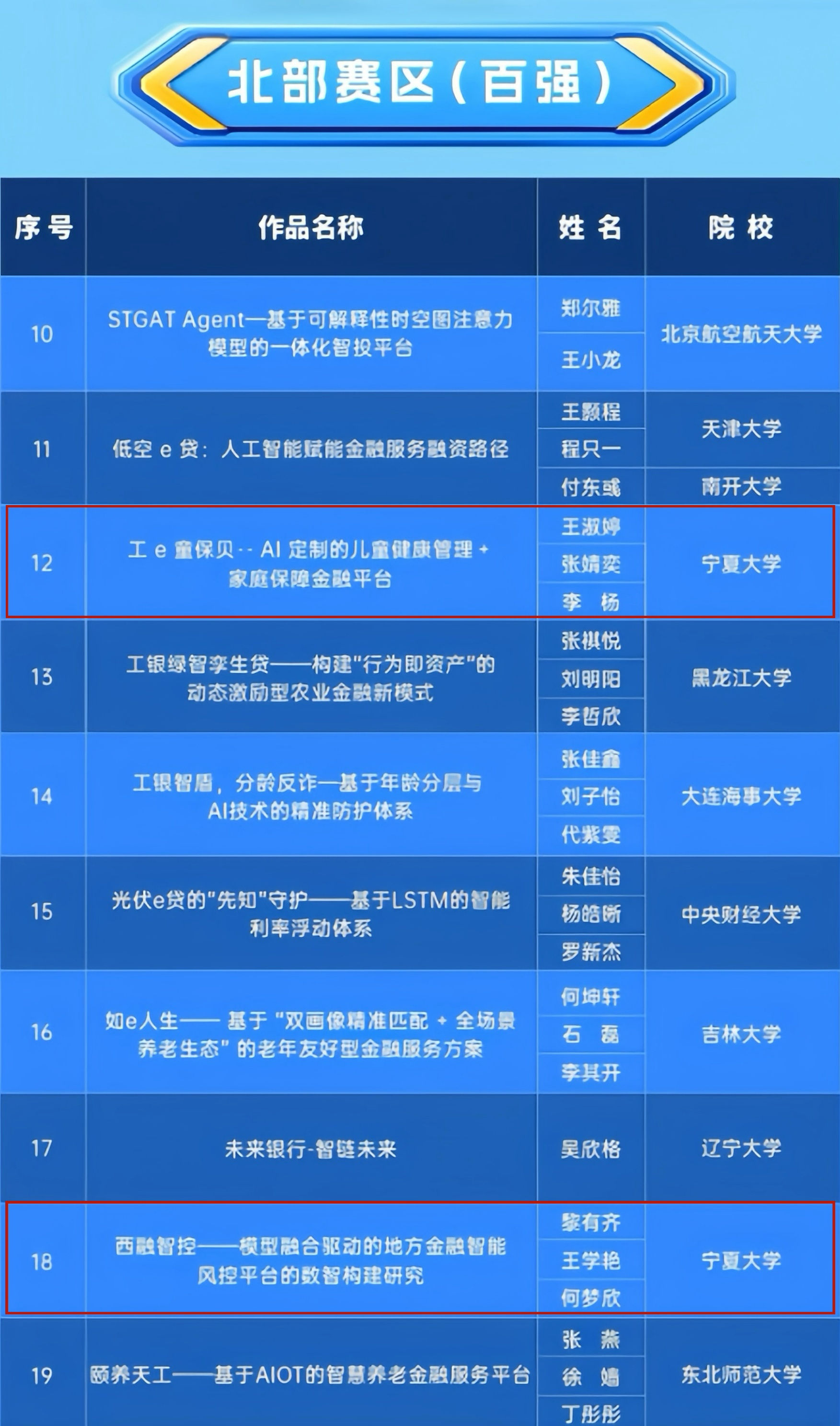 此外,由赵军老师指导,黎有齐、王学艳、何梦欣同学负责的项目《西融智控——模型融合驱动下的地方金融智能风控平台构建研究》,与由薛新耀、陈瑾老师指导,王淑婷、张婧奕、李杨同学负责的项目《工e童保贝——AI定制的儿童健康管理+家庭保障金融平台》,成功入围全国百强名单并获得全国优秀奖,为信誉网赌在本届大赛中的整体表现再添佳绩。