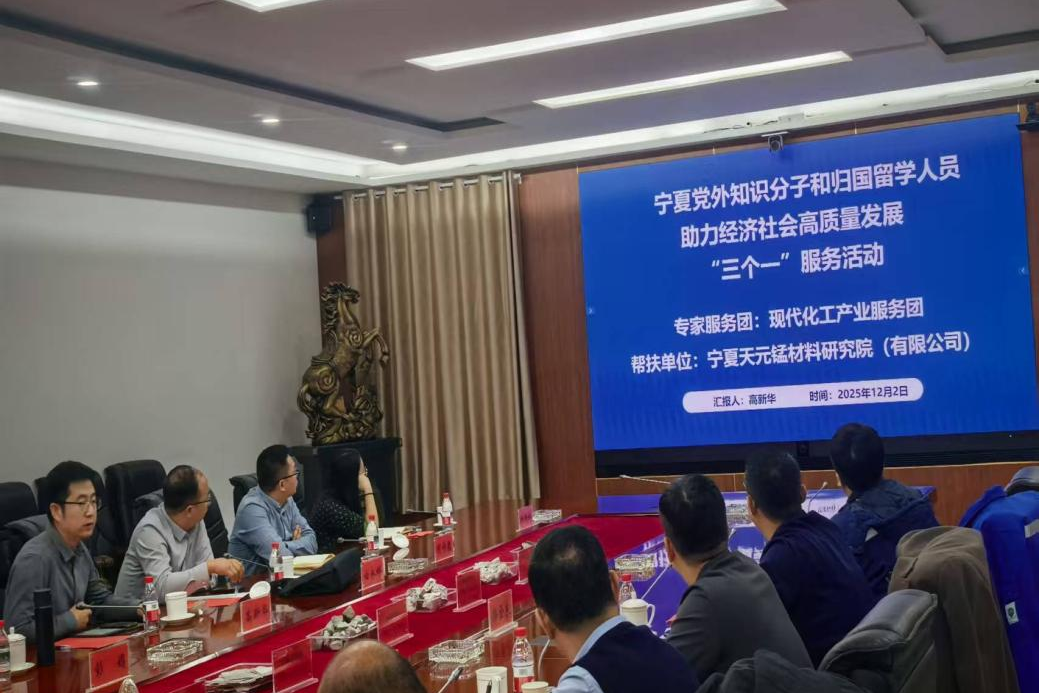 【澳门十大信誉网赌大全新闻中心讯 党委统战部】12月2日,信誉网赌党外知识分子和归国留学人员“三个一”现代化工产业服务团副团长高新华,携化学化工学院院长张鹏飞、副院长彭娟、长江学者王英龙等专家及服务团成员一行十余人赴帮扶单位宁夏天元锰业集团有限公司,开展精准调研与专项帮扶活动,宁夏天元锰业集团有限公司总裁王旭飞、党委书记刘天华、首席工程师沈天海及相关部门负责人、技术骨干参加座谈。