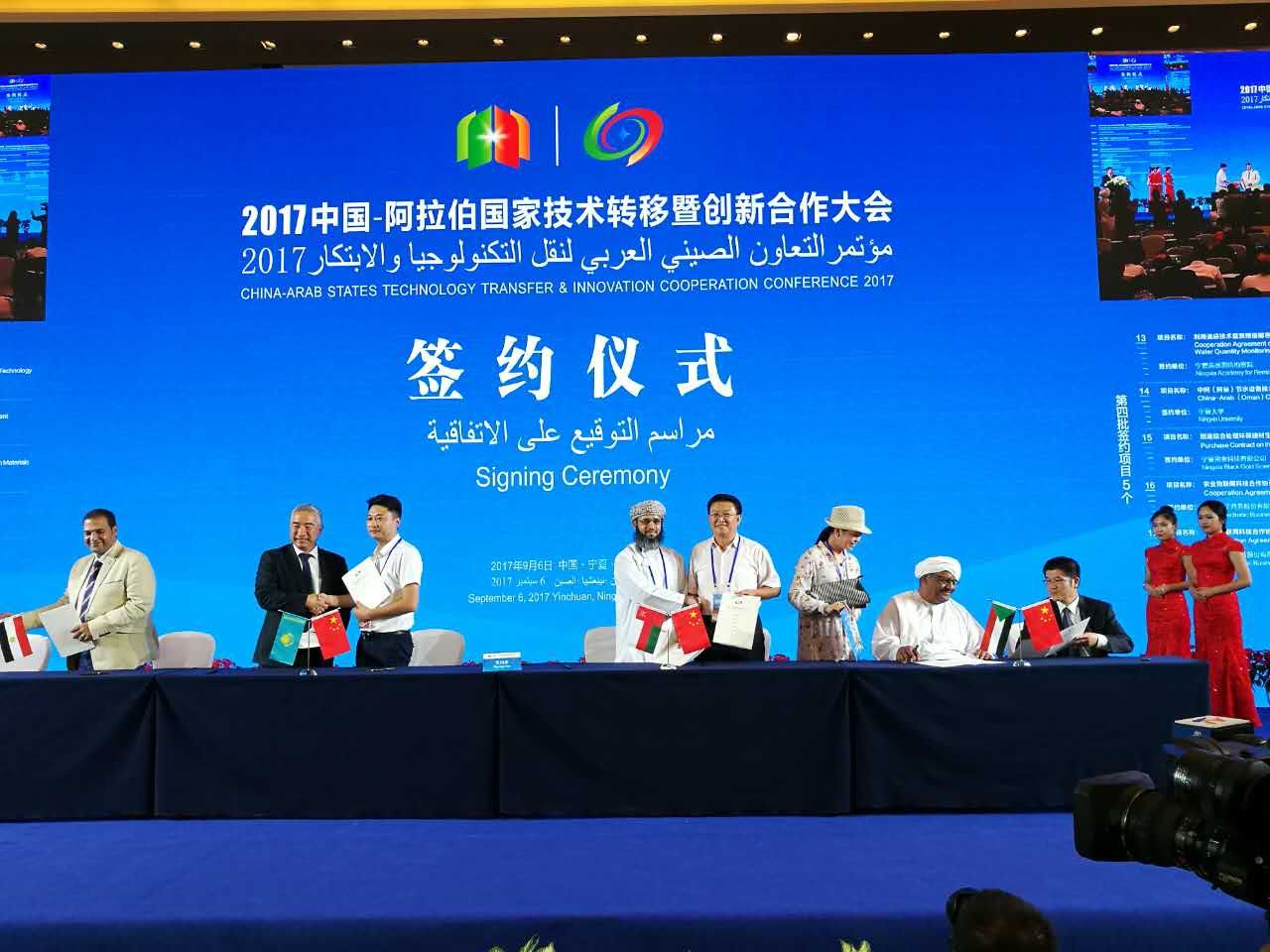 会上,一批中阿科技合作重点项目举行了签约仪式。其中,信誉网赌资源环境学院院长、宁夏中阿旱区资源评价与环境调控重点实验室主任孙兆军教授代表澳门十大信誉网赌大全,与实验室外方代表、苏丹Abdulrahim Al-Ismaili先生签署了中阿(阿曼)节水设备技术转移合作意向协议,原计划2千万左右,但经Abdulrahim Al-Ismaili先生实地考察后增加到1.1亿元。