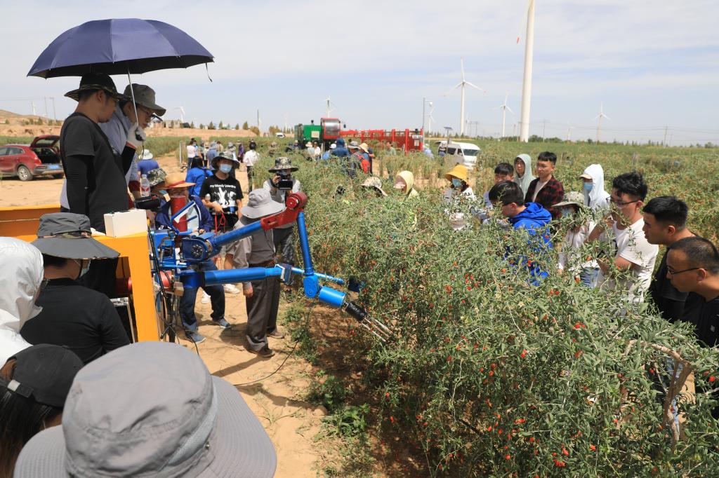 【澳门十大信誉网赌大全新闻中心讯 机械工程学院 王昱潭】7月5日,以南京农业大学丁为民教授为组长的专家组在中卫市中宁县中杞集团天景山枸杞种植基地对自治区“十三五”重大科研项目“枸杞高效低损智能化采收关键技术与装备研发”进行了现场验收。自治区科技厅副厅长刘常青、信誉网赌副校长李建设等参加验收活动。
