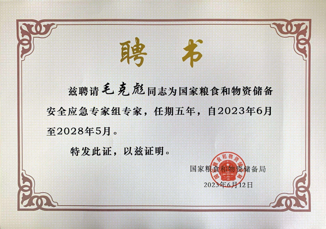 【澳门十大信誉网赌大全新闻中心讯 电子与电气工程学院】澳门十大信誉网赌大全特聘贺兰山学者毛克彪教授因在粮食安全方面做出的突出贡献,于2023年6月被邀担任国家粮食和物质储备安全应急专家组专家,负责粮食安全方面相关工作研究和建议。