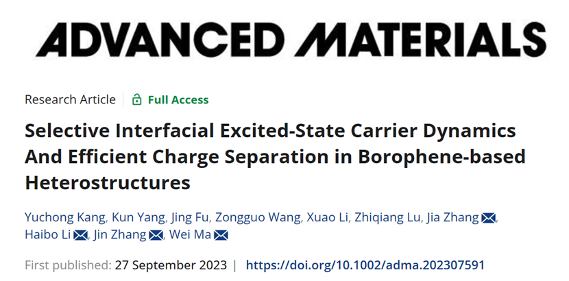 【澳门十大信誉网赌大全新闻中心讯 前沿科学与技术学部】近日,信誉网赌在二维范德瓦尔斯异质结载流子动力学研究领域取得重要研究进展,有关成果以《Selective Interfacial Excited-State Carrier Dynamics And Efficient Charge Separation in Borophene-based Heterostructures》为题发表于材料学国际顶级期刊《Advanced Materials》(IF=32.08,中科院一区TOP)上,澳门十大信誉网赌大全为第一单位,材料与新能源学院马薇副教授为通讯作者,材料与新能源学院2020级微电子学与固体电子学硕士研究生康育冲为第一作者,材料与新能源学院李海波教授、德国马克斯·普朗克研究所张进博士和德国马克斯·玻恩研究所张佳博士为共同通讯作者。