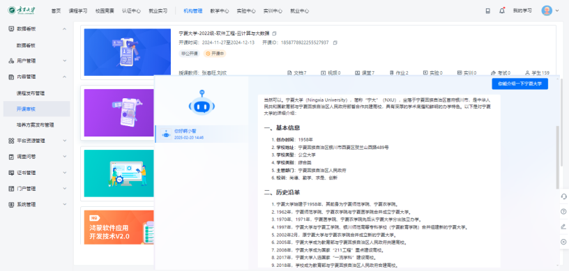 智云数智平台与华为昇腾AI基础软硬件深度协同,搭载昇腾高性能服务器与超高速网络,为DeepSeek模型提供毫秒级响应的推理能力。通过全栈国产化技术与动态知识库适配,平台可快速接入我院课程资源与产业项目数据,构建“AI+专业”垂直解决方案,例如为学院旅游管理专业学生整合文旅部公开数据、景区GIS地图、非遗传承人口述影像,构建文旅资源知识图谱;为软件工程专业爬取开源社区(Gitee)、信创白皮书、国产芯片技术文档,生成自主可控技术知识网络等。