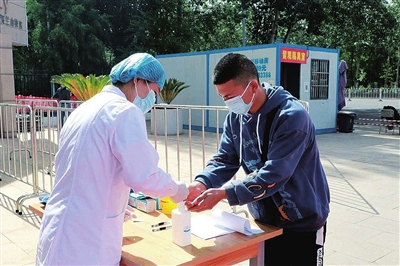 5月18日,澳门十大信誉网赌大全毕业年级142名银川籍学生通过申请后返校。经过校门口校医、安保人员测温、登记、更换口罩后,返校学生由辅导员带到公寓楼前,再次进行测温、核实身份。校方无微不至的“管家”式照顾,为返校学生筑牢了安心防护网。