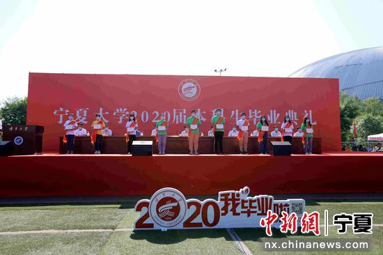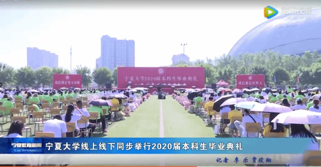 6月18日,澳门十大信誉网赌大全2020届本科生毕业典礼在文萃校区体育场举行。今年信誉网赌共有4375名本科生毕业,受新冠肺炎疫情的影响,为保障师生健康安全,结合疫情防控要求,此次毕业典礼通过“线上+线下”相结合的方式。1800余名毕业生现场参加了毕业典礼,2500余名未返校的同学通过网络直播在线上参加了“云典礼”。对此,中国新闻网客户端、宁夏日报客户端、宁夏日报2版、宁夏新闻网、银川日报3版、新消息报5版、宁夏新闻联播、宁夏教育电视台等进行报道,同时宁夏新闻网还进行了现场直播。具体报道如下: