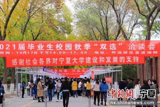 10月17日,学校在怀远校区举办2021届毕业生校园秋季“双选”洽谈会,中新网和宁夏日报客户端对此进行报道,具体如下: