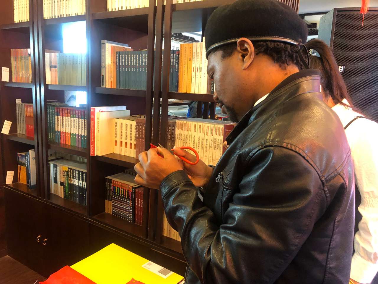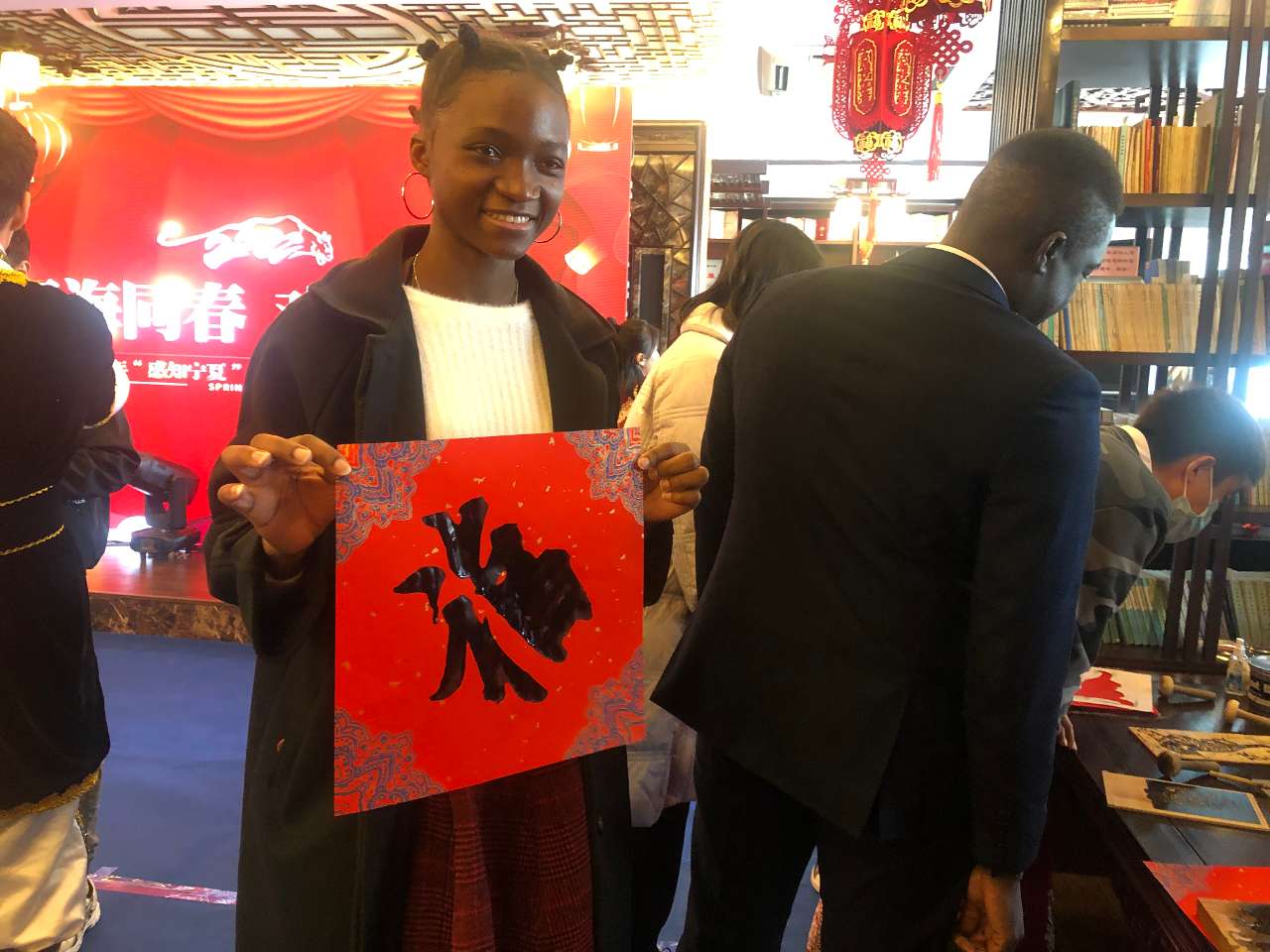 剪窗花、拓版画、写春联、学刺绣……留学生们积极参加现场各种春节文化体验活动,脸上满是笑容。