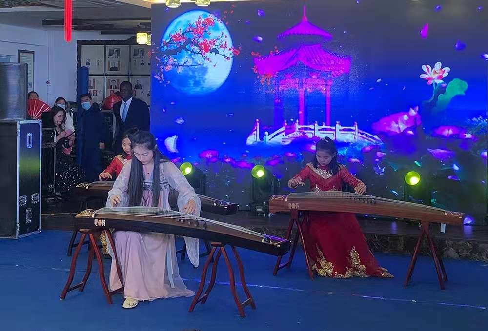 小朋友现场进行民族传统乐器古筝的表演,轻柔典雅。