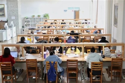 同学们在图书馆里安静地学习。马丛珍/摄