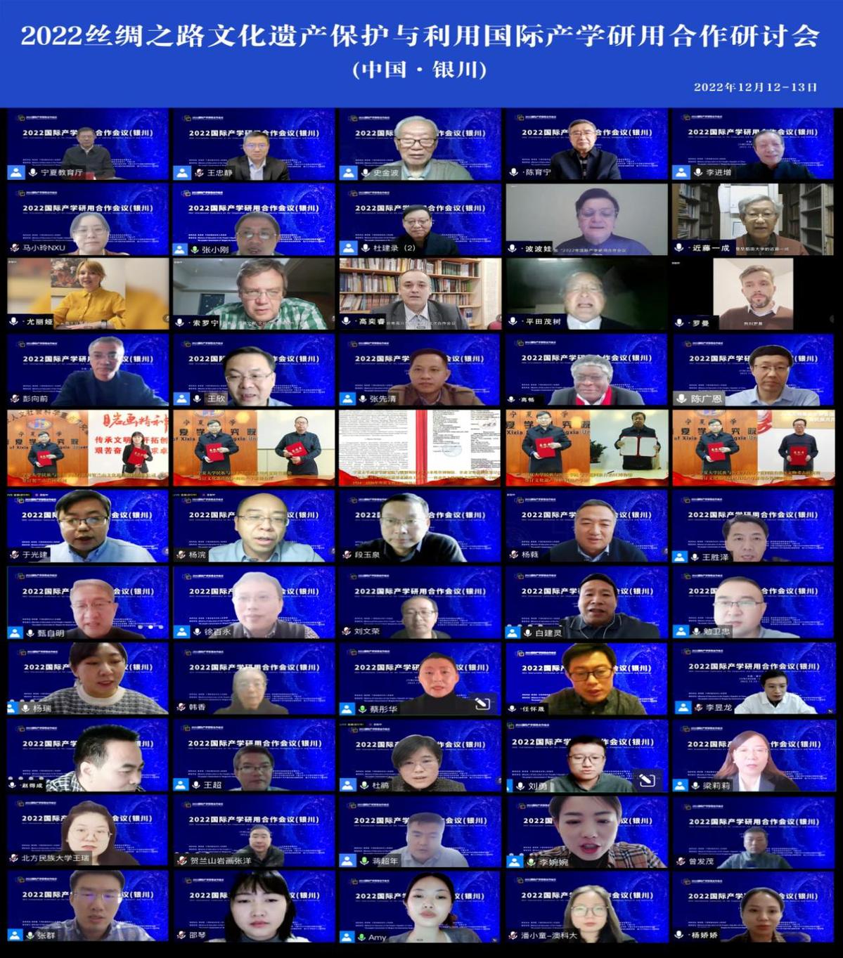 12月12至13日,2022年丝绸之路文化遗产保护与利用国际产学研用合作研讨会在银川召开,来自俄罗斯、英国、法国、日本等国内外50余家高校、科研院所、文化旅游企业的300多名专家学者相聚云端,共同探讨丝绸之路沿线文化遗产保护、传承、利用和文化旅游产业融合高质量发展新路径。