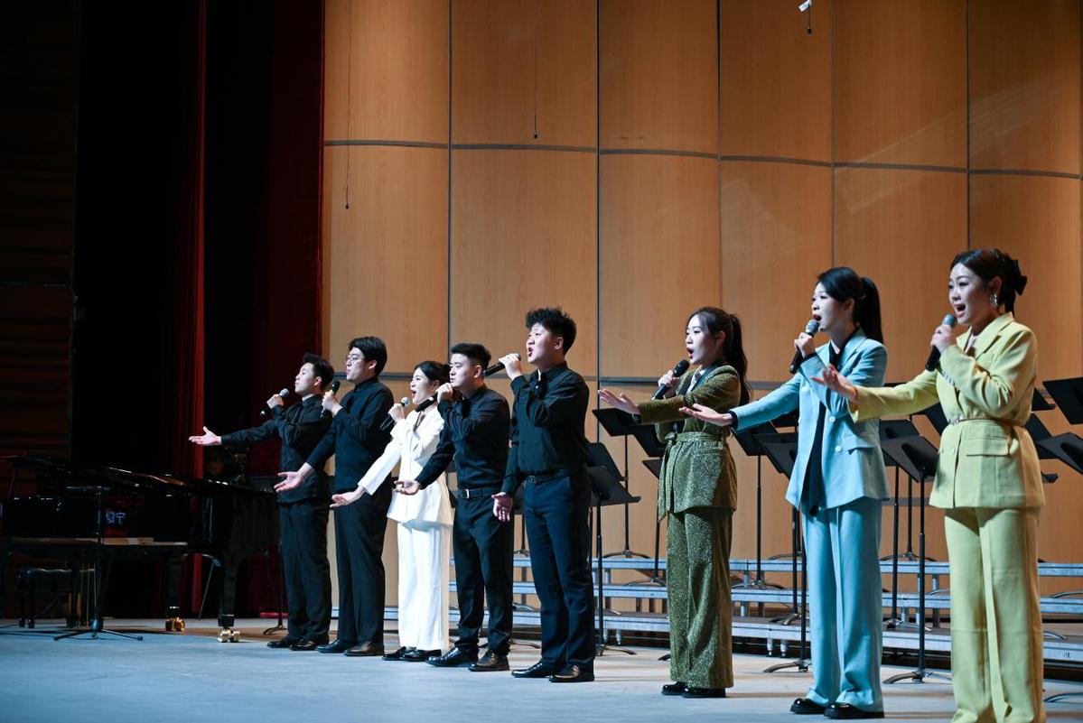 专场音乐会以一首耳熟能详的《灯火里的中国》开场。音乐会上,混声合唱、女声合唱、男生合唱、独唱、阿卡贝拉等精彩纷呈,或激昂豪迈,或优美深情,或真挚感人,完美演绎了《逆行者平安》《大鱼》《少年》《我的深情为你守候》《追寻》《萱草花》《山歌唱出好兆头》《唱支山歌给党听》《那坨坨》《人世间》等近20首歌曲。