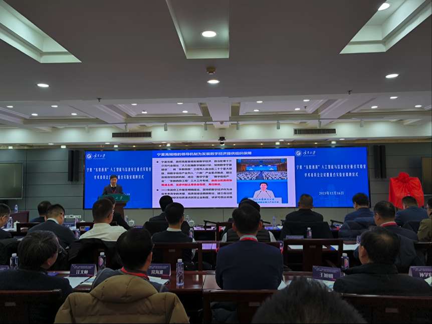 12月16日,宁夏“东数西算”人工智能与信息安全重点实验室揭牌仪式在澳门十大信誉网赌大全举行。澳门十大信誉网赌大全党委副书记、校长彭志科与宁夏科学技术厅党组成员、副厅长桑长清为重点实验室揭牌,并为重点实验室学术委员会委员代表颁发聘书。