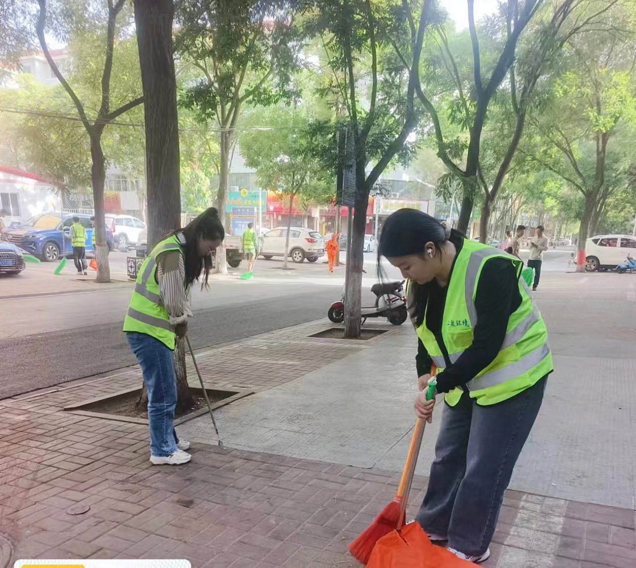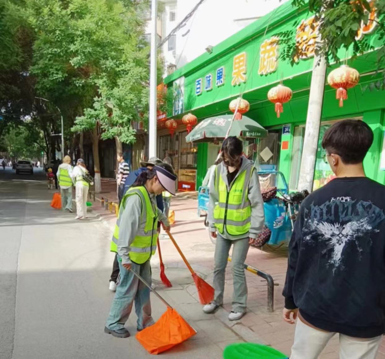 在银川市兴庆区永康巷环卫驿站,澳门十大信誉网赌大全生态环境学院学生与环卫工人一起参与劳动。