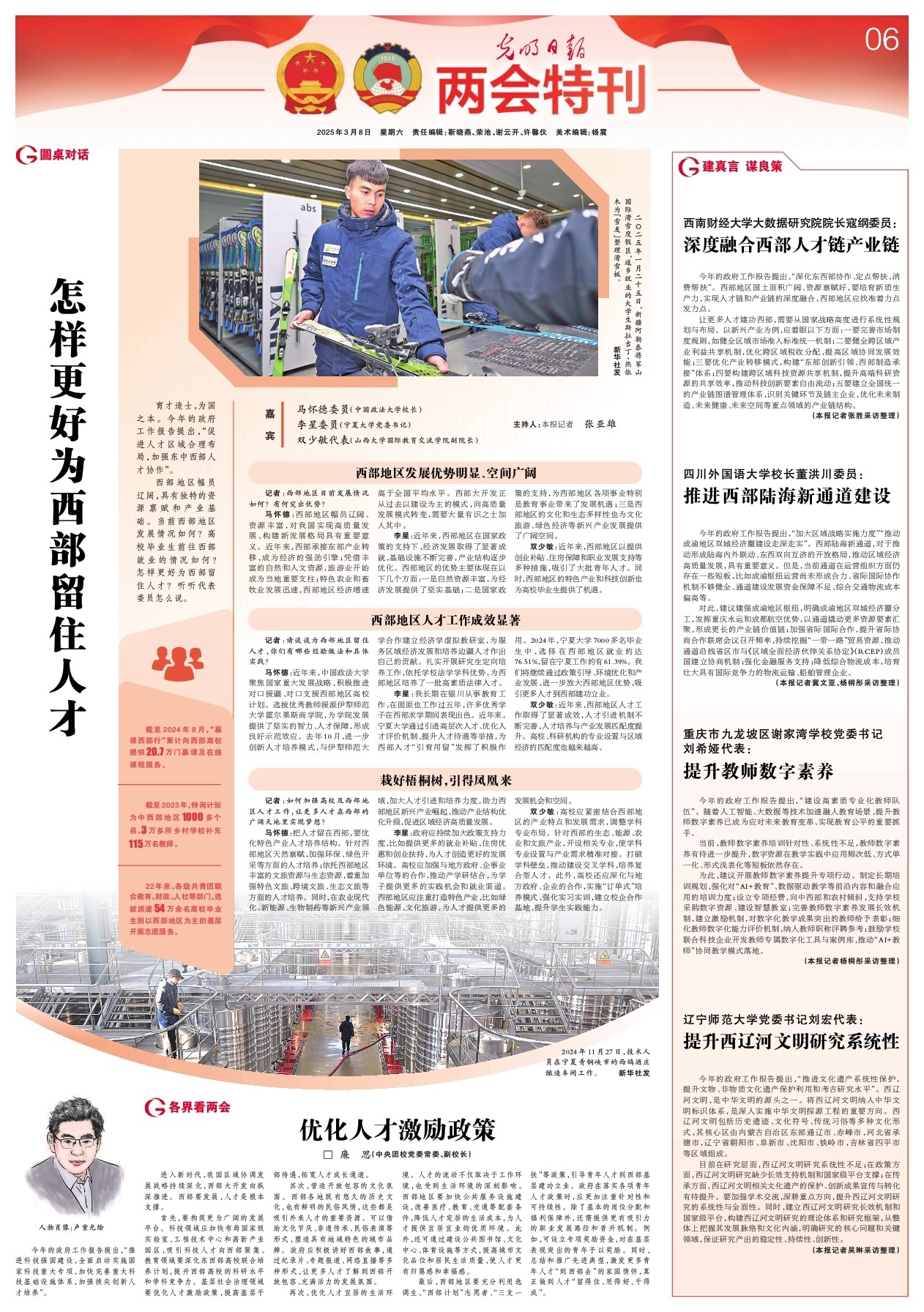 光明日报:“西部聚才兴业,政策助力不可少”——代表委员热议西部人才如何更好“引育用留”