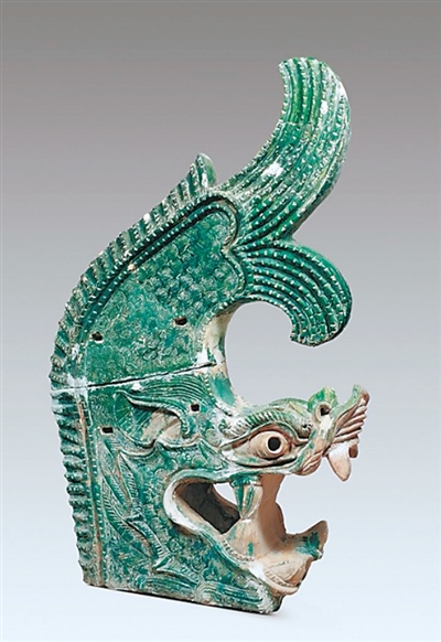 西夏绿釉鸱吻。银川西夏陵区管理处供图