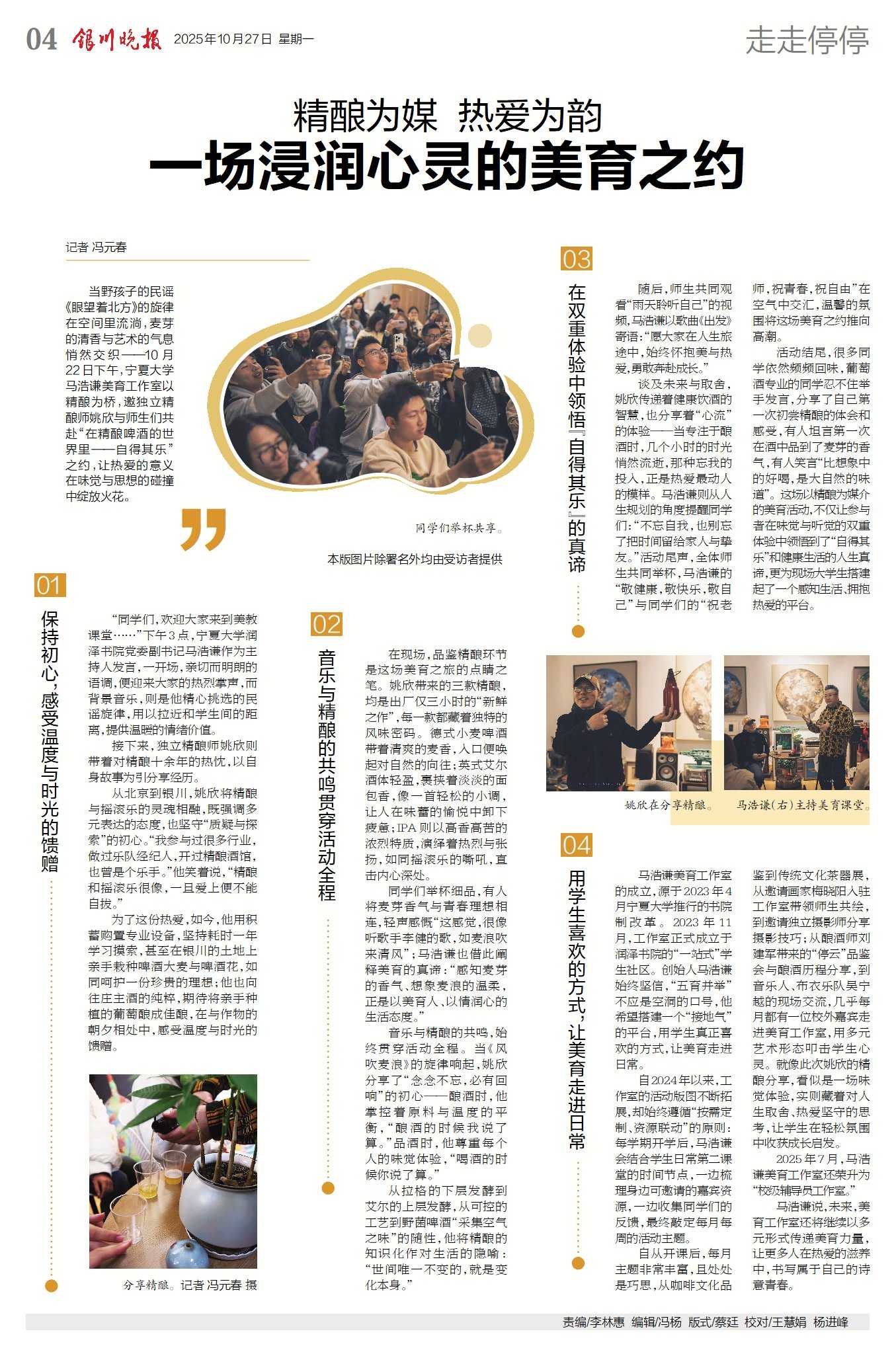 从北京到银川,姚欣将精酿与摇滚乐的灵魂相融,既强调多元表达的态度,也坚守“质疑与探索”的初心。“我参与过很多行业,做过乐队经纪人,开过精酿酒馆,也曾是个乐手。”他笑着说,“精酿和摇滚乐很像,一旦爱上便不能自拔。”