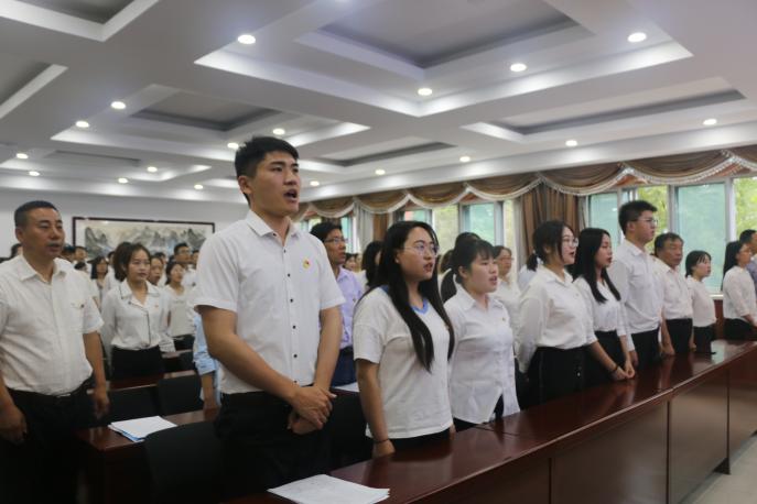 大会在嘹亮的国歌声中拉开帷幕,全体党员观看了“七·一”庆祝建党98周年的献礼短片《我宣誓--》。随后,全体党员及预备党员对着党旗进行了庄严的入党宣誓,重温入党誓词,并合唱了《没有共产党就没有新中国》。