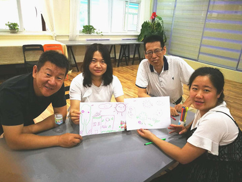 心理健康教育咨询指导中心主任王淑莲为老师们上了一堂精彩的心理工作坊课。课程从破冰活动开始,通过团队画画、盲人旅行等心理游戏让教师们重新认识了工作中合作、倾听、理解的重要性,重新体会了在家庭和工作中信任与被信任、助人与被助、爱与被爱的关系。